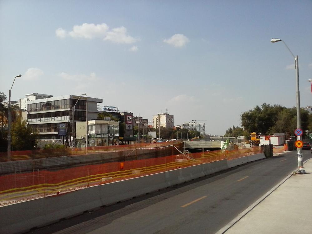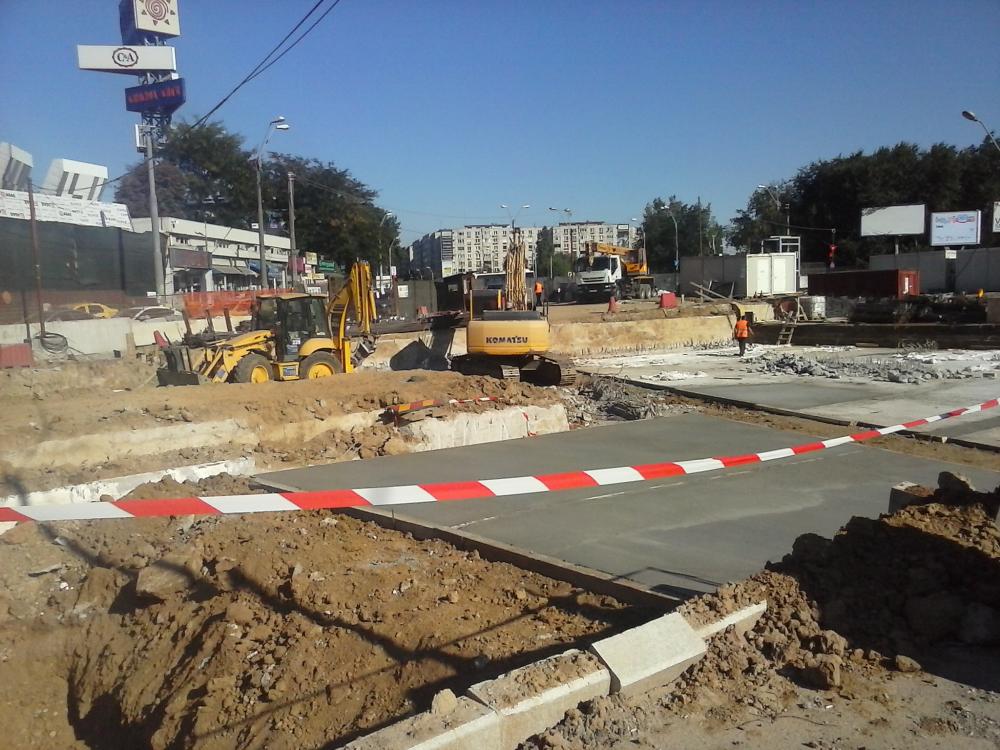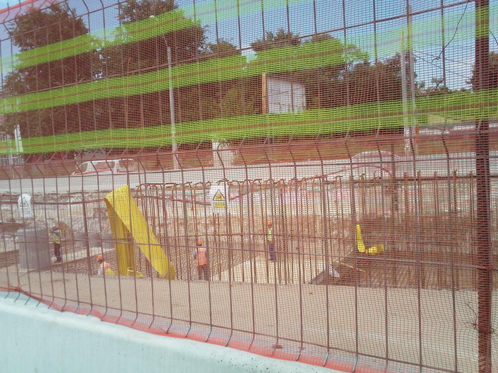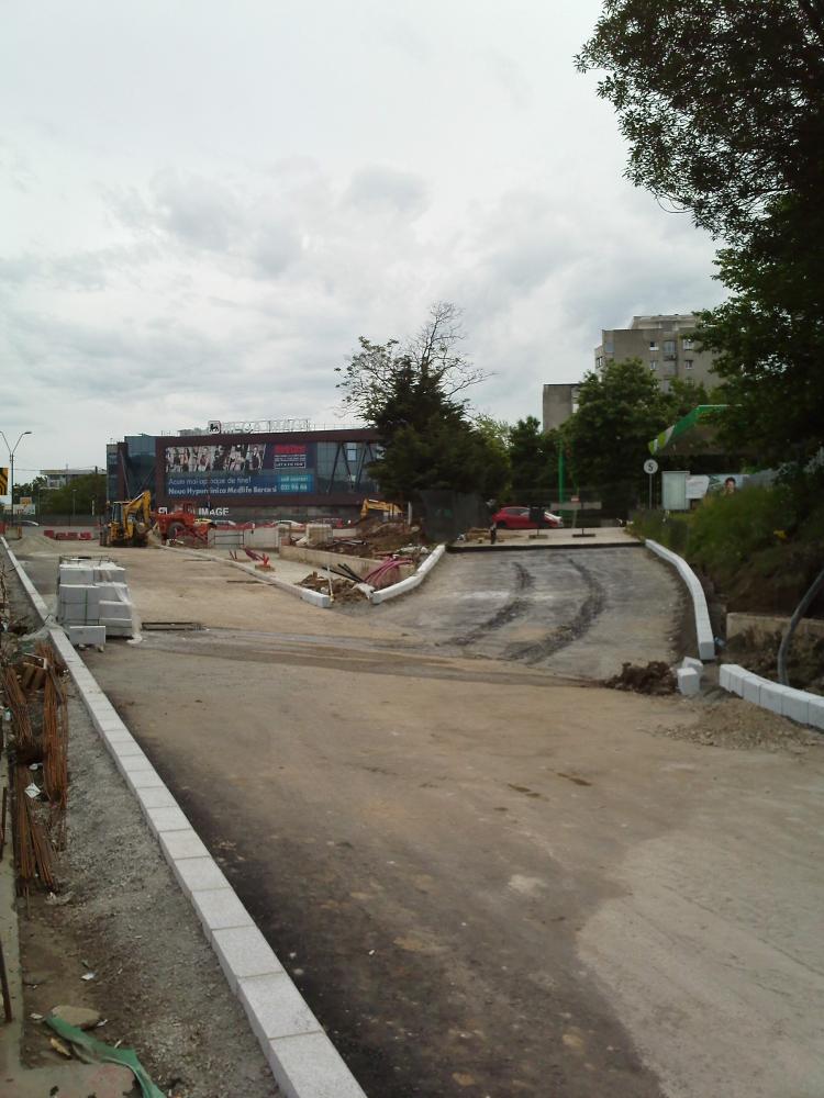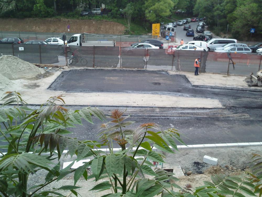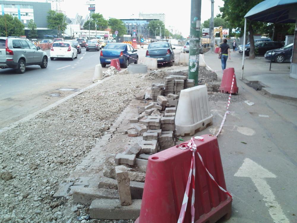 In dreapta se zareste parapetul ce deilimeaza zona de pasaj deja executat, peste care circula traficul auto.