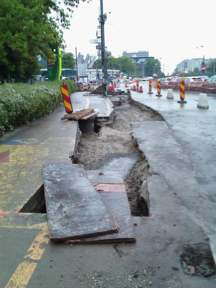 In lungul bretelei Vacaresti-Oltenitei (pe langa rampa de intrare in pasajul auto) se pozeaza bordurile. Cablaria in sfarsit a intrat prin niste santuri si s-a pus pat de nisip peste si inca un pat de caramizi! Pe Oltenitei de-a lungul benzinariei mol se sapa pentru canalizarea pluviala spre un camin.