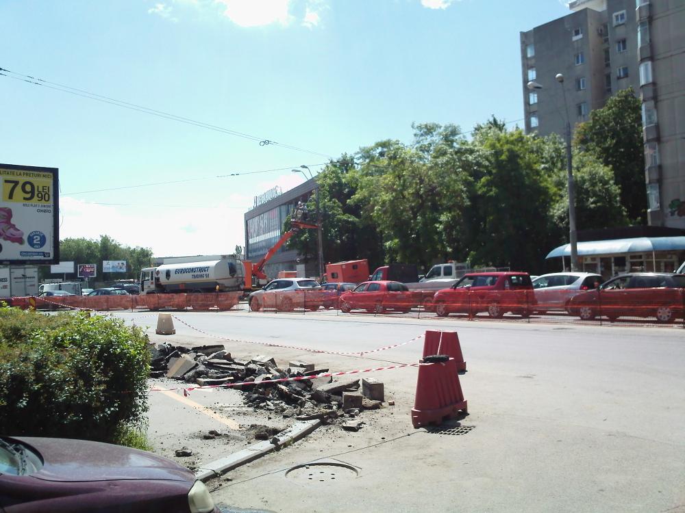 In aval de rampa de iesire din pasaj in sos. Vacaresti, s-au inceiat si aici lucrarile la canalizare. In fundal de vede str. Martisor. In spate este targul Castani.