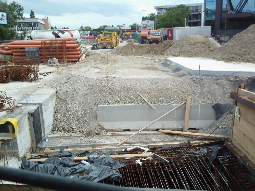 7. Pasaj rutier zona intersectie are planseu executat conform schitei, partial radier si pereti caseta. Rampa aferenta (rampa Nitu Vasile), pentru ambele sensuri de circulatie este in curs de excavare si de finalizare a peretilor mulati pe partea cu magazinul Big unde mai exista o portiune lipsa in zona devierii circulatiei auto.
