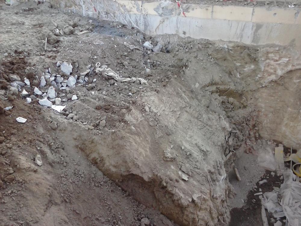 Interesant randul de borduri de pe partea peretelui mulat al pasajului. la rampa de intrare inca neexcavata, peste care se circula.