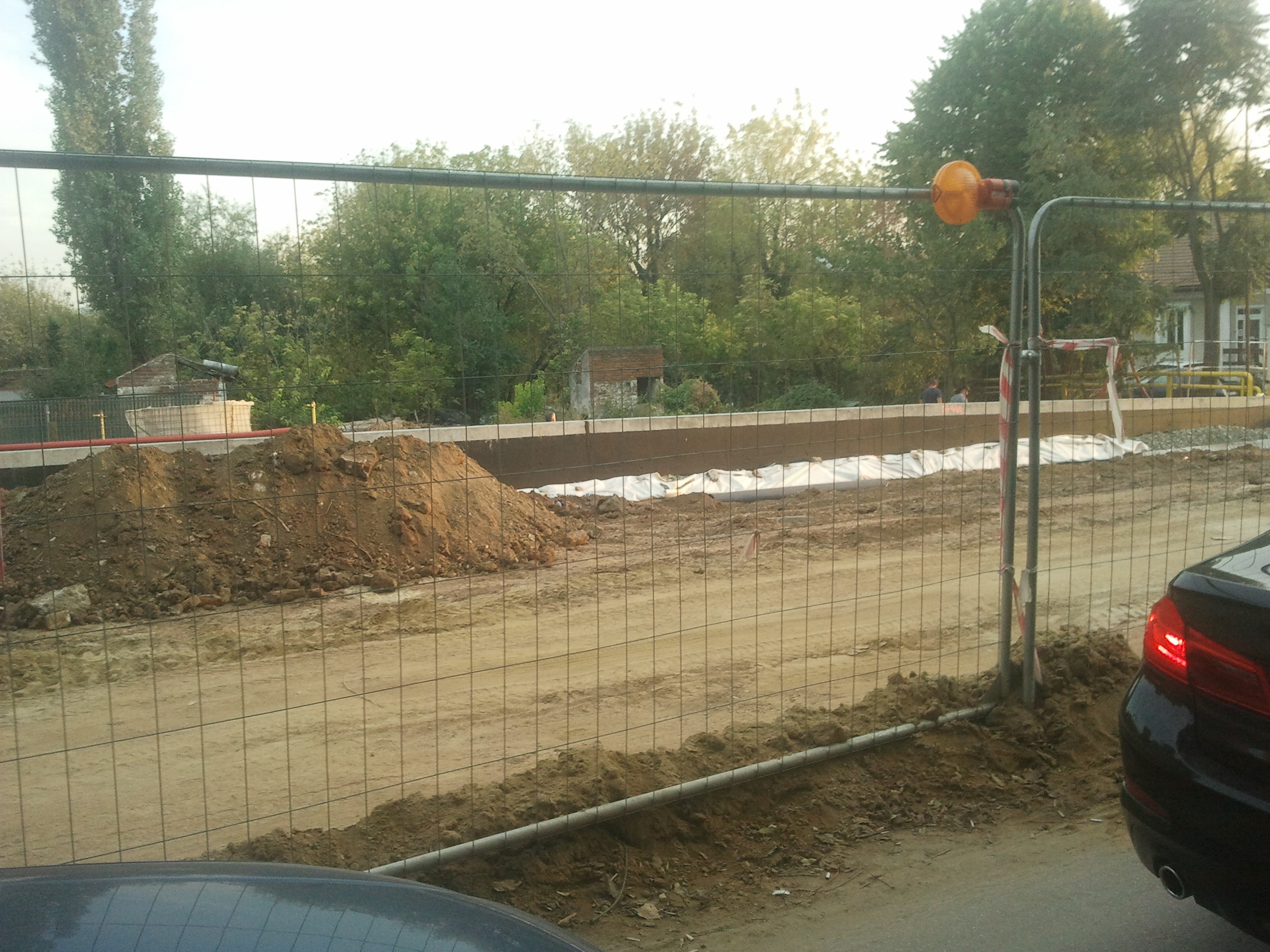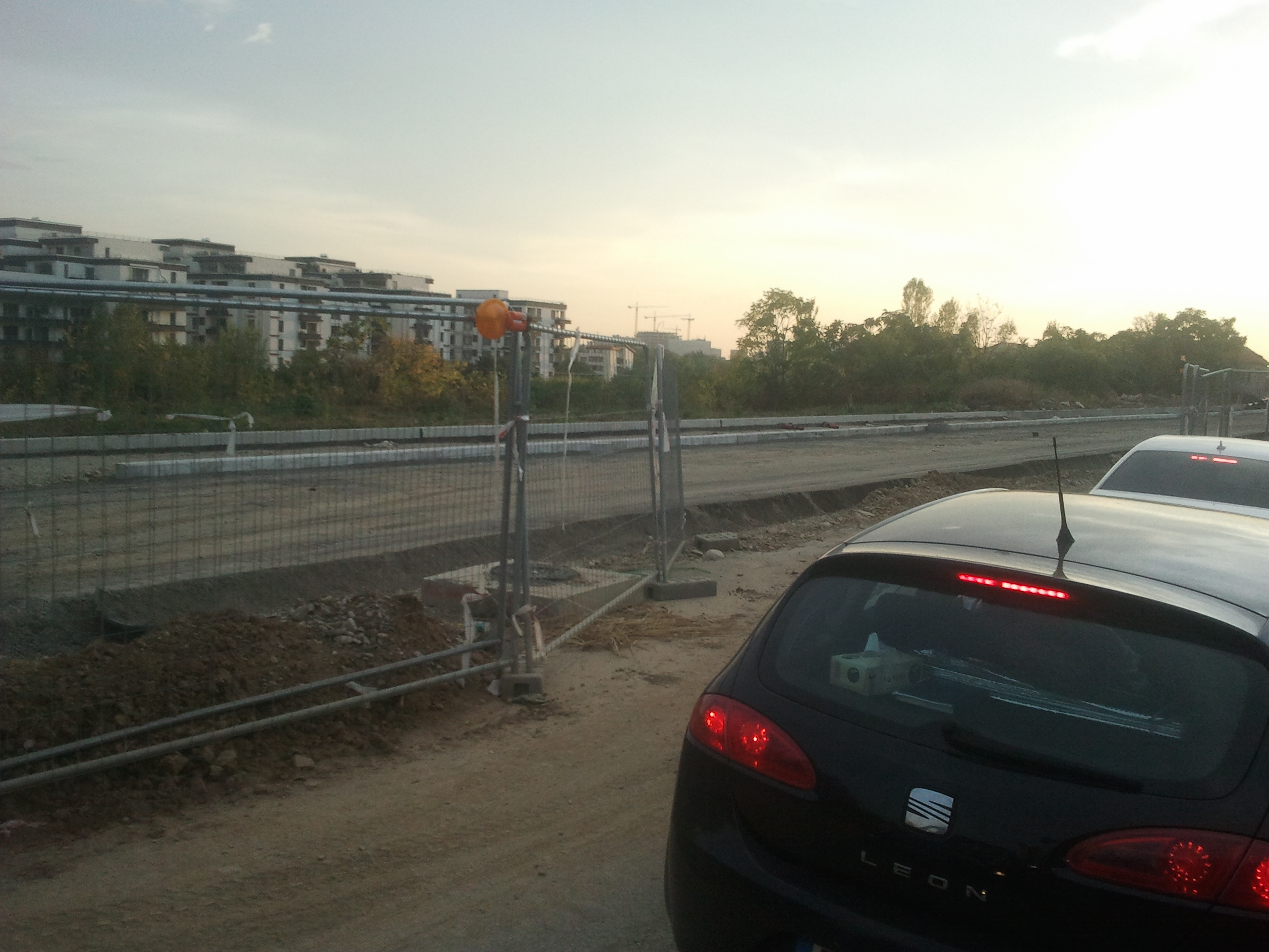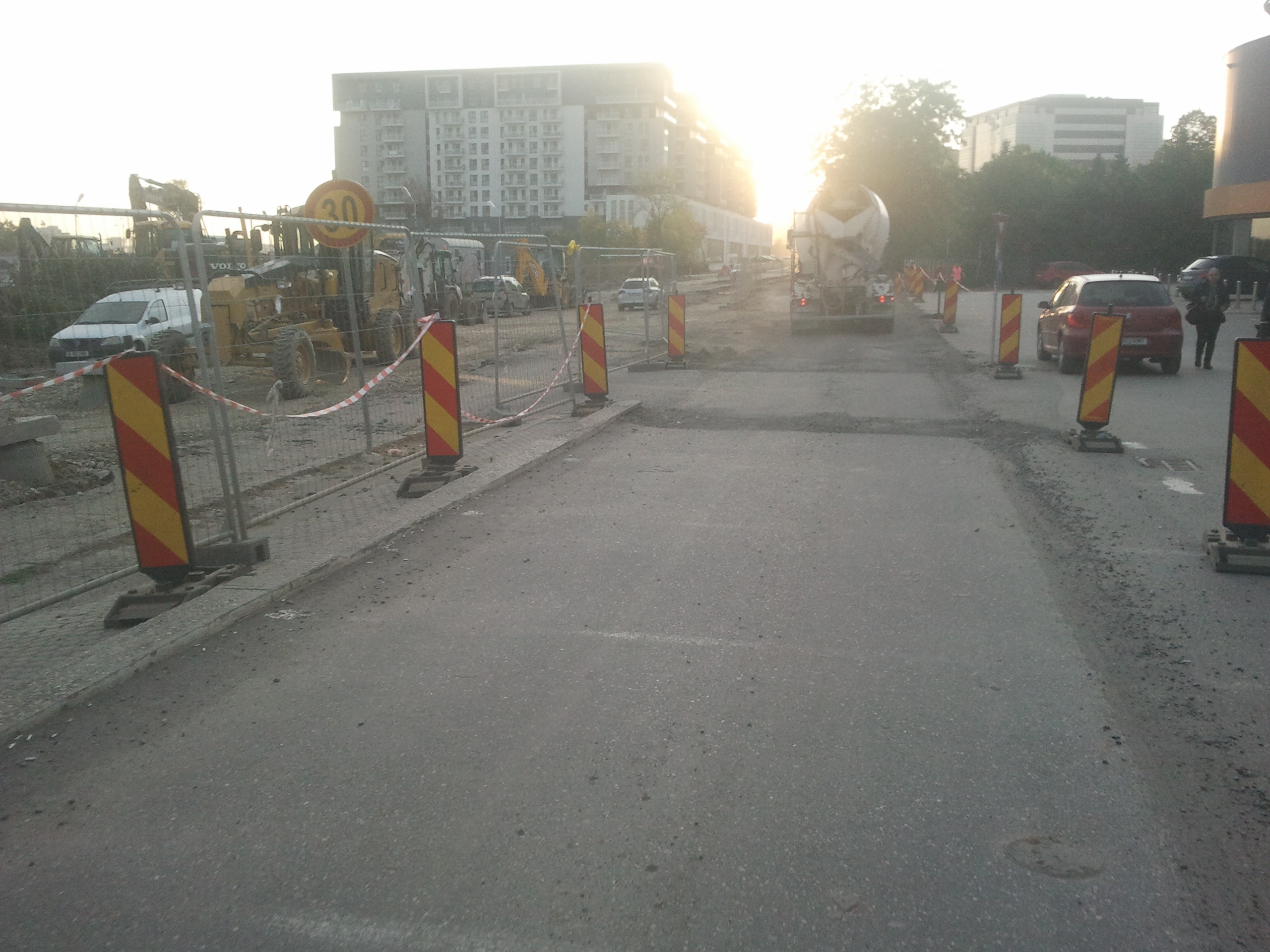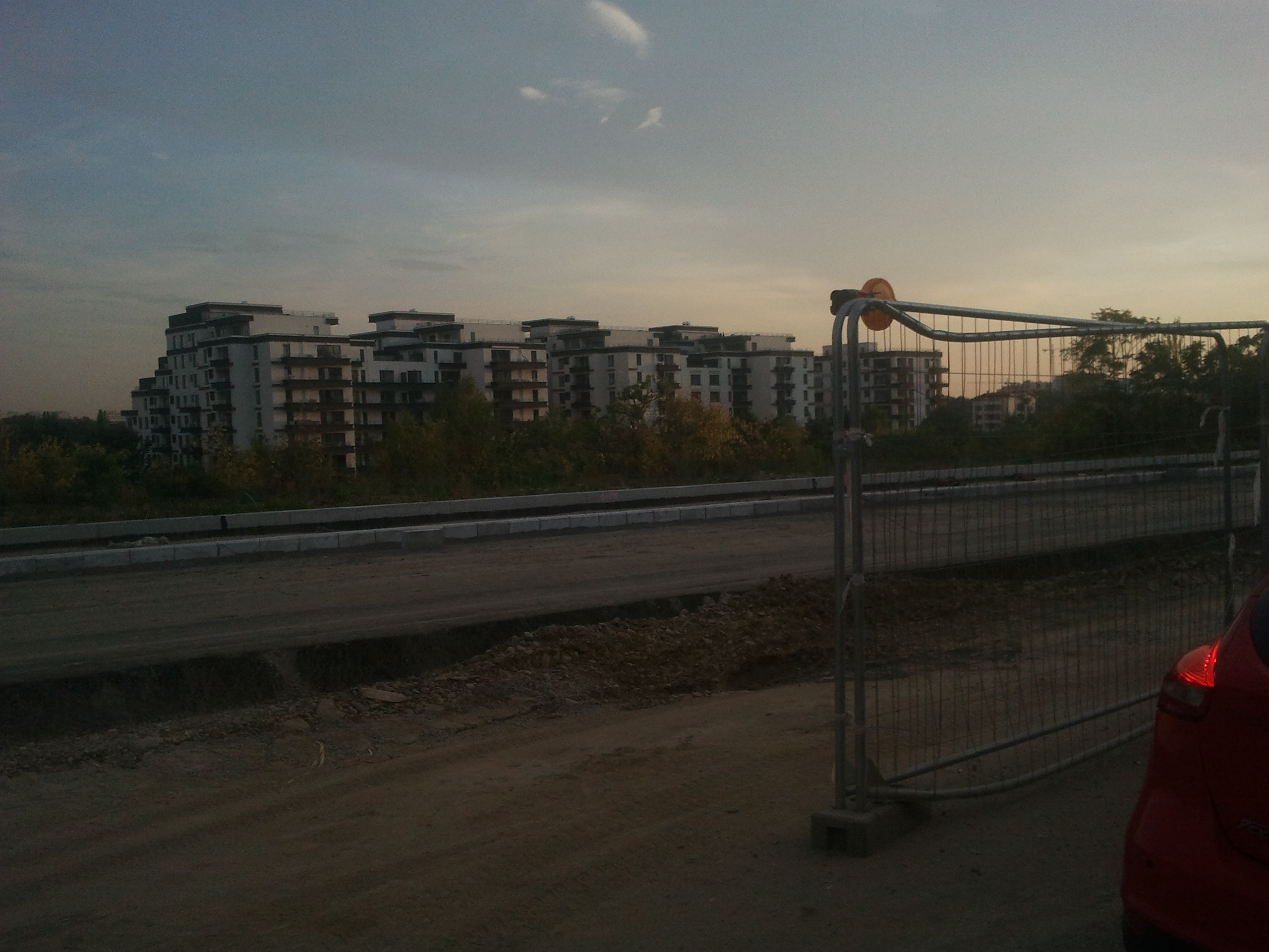 Totusi azi am zis sa profit de ora de varf si de sensul unic pe o singura banda instaurat si sa incerc cateva poze. Carosabilul este de nedescris, gropi peste gropi, praful noriul uscat si molozul sunt la ele acasa, orice basculanta, orice betoniera trece ridica un nor dens de praf care poate bloca chiar si jumatate din lumina directa a soarelui. Cei care circula cu masinile pe aceasta ingustare curenta sunt cu siguranta maestri in masochism, oricat de confortabil ar fi automobilul in cauza. Practic dintr-un kilometru iesi cu masina ca si cum ai fi mers pe camp prin tot colbul.