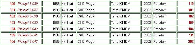 Atenție ... mă refer doar la KT4DM-uri (ce e pozat sunt KT4D, mai vechi) adică doar seria 100-106 (cele cu uși asemănătoare de V3A, nu de T4R). Când am vizitat prima dată Ploieștiul, era la fix 2 săptămâni după retragerea lor în vederea reabilitării căilor de rulare, perioadă plină de Ikarusuri 280 pe liniile 101 și 102 dar și cu ultimele DAC-uri. Tatrele le-am văzut și în vechia schemă de culoare cred că prima dată prin vara lui 2014, când am intrat în depou alături de alți 2 prieteni să vorbim cu cineva dacă ne lasă să fotografiem tramvaiele ... atunci l-am văzut pentru prima dată și pe 051, singurul V3A modernizat din țară înafară de București. Din păcate nu am dat de nimeni astfel că am fost nevoiți să rămânem doar cu ce am văzut.