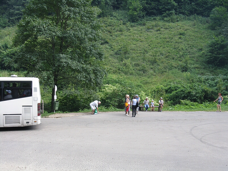 Se lasă cu îmbrânceli, înjurături... cei din staţie dau buzna peste cei care vor să coboare. Nişte pensionari se bagă şi se scot reciproc din diverse părţi anatomice... alţii discută de ceva eveniment organizat de PSD în zonă. Cei 3 de pe bancă şi femeia din dreapta nu au mai încăput (mai sunt şi alţii, la umbră, care nici nu au mai încercat să se apropie de midibuz, nu aveau şanse). Celălalt grup e cel care era să rămână în autobuz.