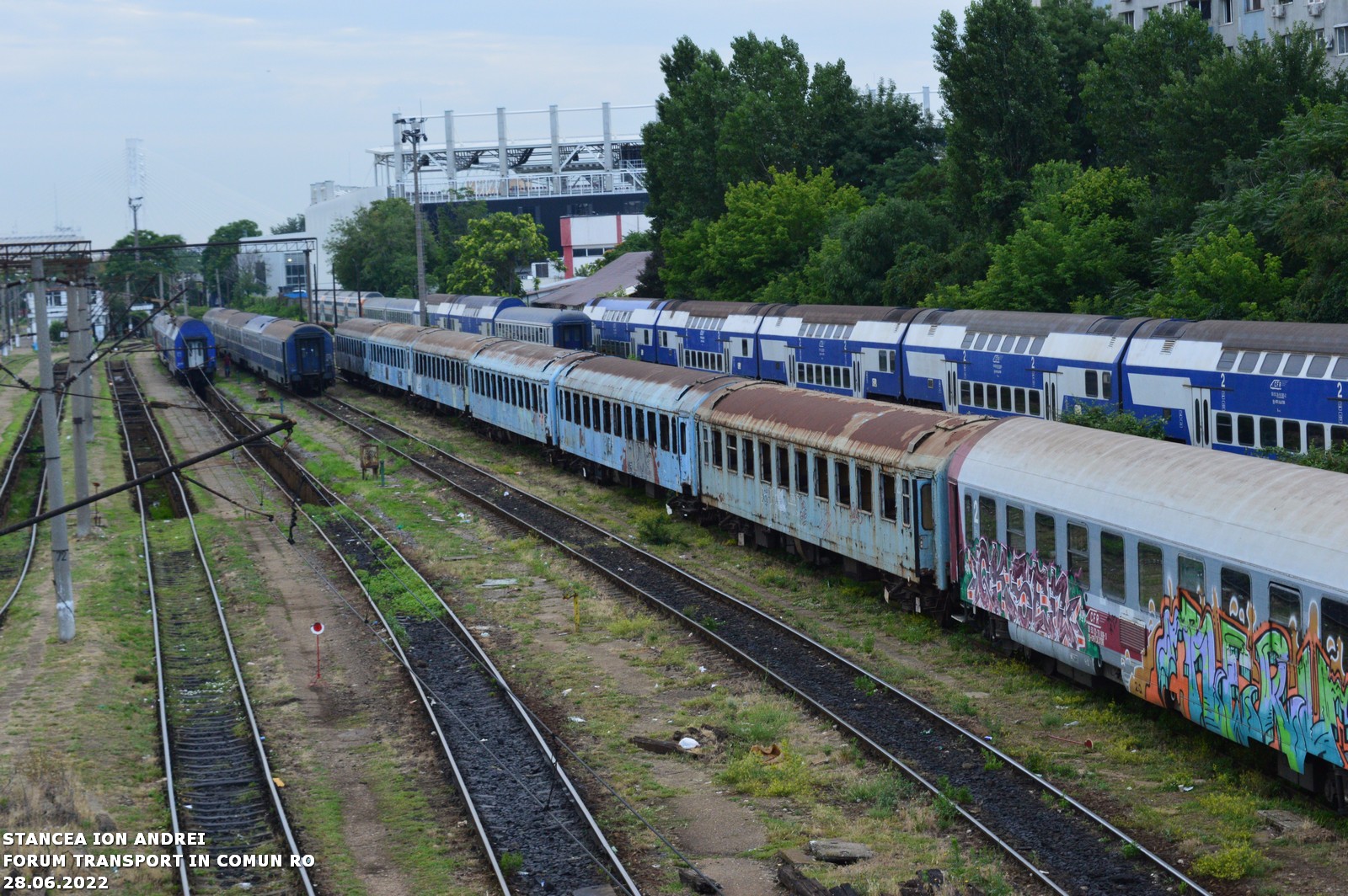 10 foste vagoane de calatori, seriile 19/20/39-50, produse in anii '80 in RDG, au fost retrase in ultimii 2-3 ani din circulatie si remizate in Gara Bucuresti Obor. Au fost aduse in Gara Bucuresti Nord, de unde au fost manevrate spre Revizia Bucuresti Basarab. In filmulet nu se poate observa foarte clar, dar interiorul vagoanelor arata foarte, foarte rau peisajul fiind unul sinistru. Vagoanele acestei garnituri "prezidentiale" sunt in ordine de la locomotiva: 20-50 048 > 20-50 041 > 19-50 010 > 20-50 179 > 39-50 016 > 20-50 057 > 20-50 095 > 20-50 122 > 39-50 026 > 39-50 015