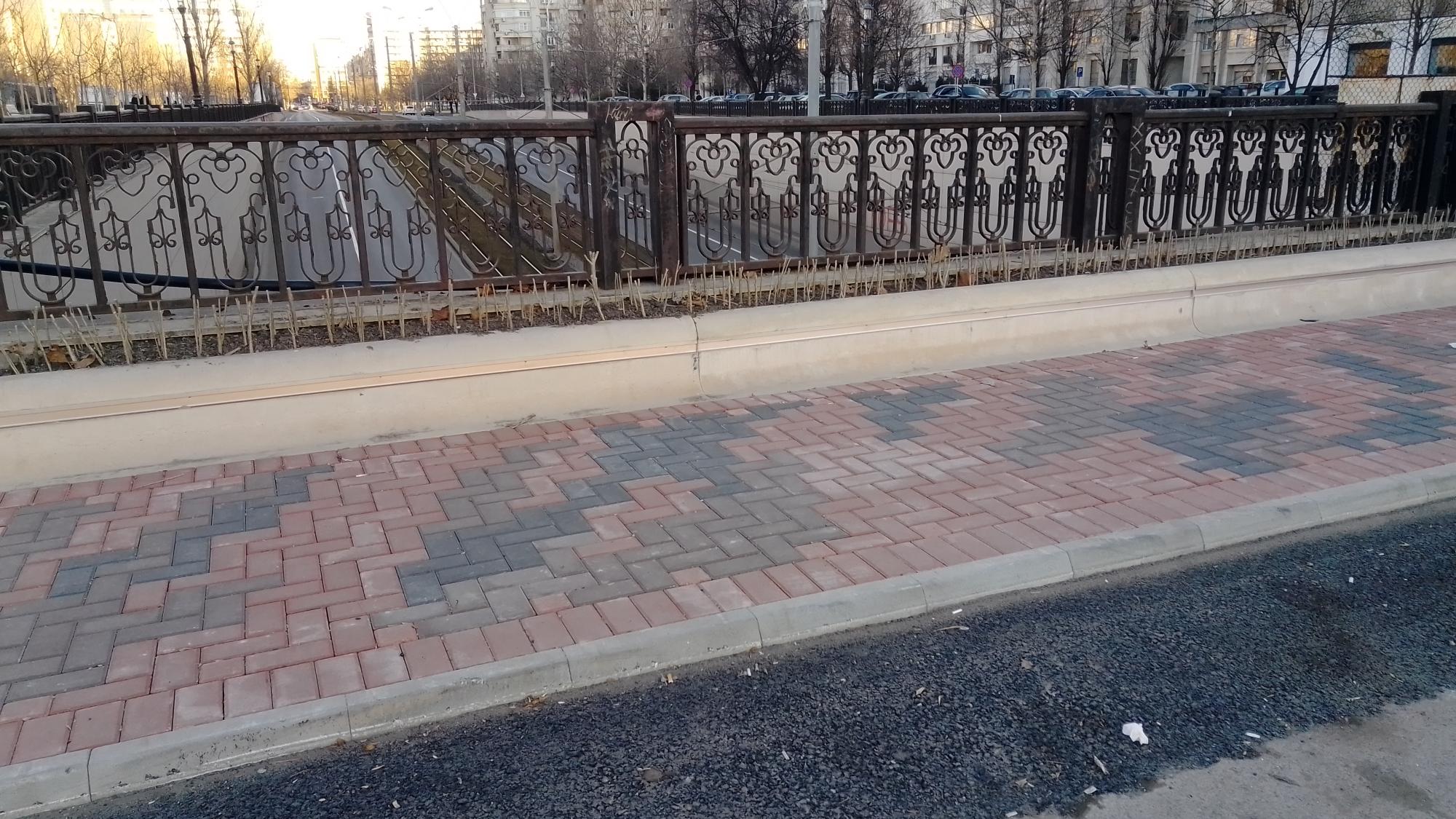Continua orgia spargerii banului public pe Bd. Rebreanu, unde se sparg borduri de granit si pavaje in perfecta stare si se pun "caramizile".