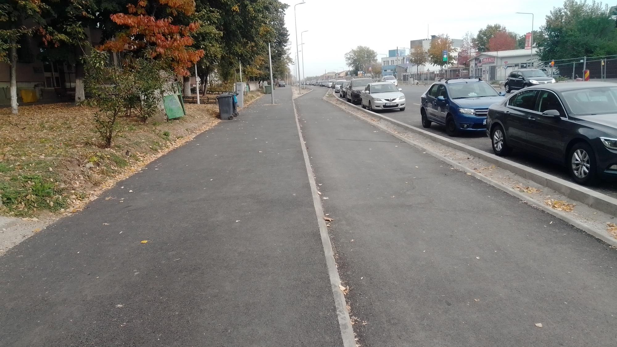 Care o fi rostul spaţiilor ,,verzi" lăsate între pista de biciclete şi trotuar? Acolo nu va creşte nimic în veci, cel mult gazon pus cu mâna o dată la câteva luni, de copaci nici nu poate fi vorba.