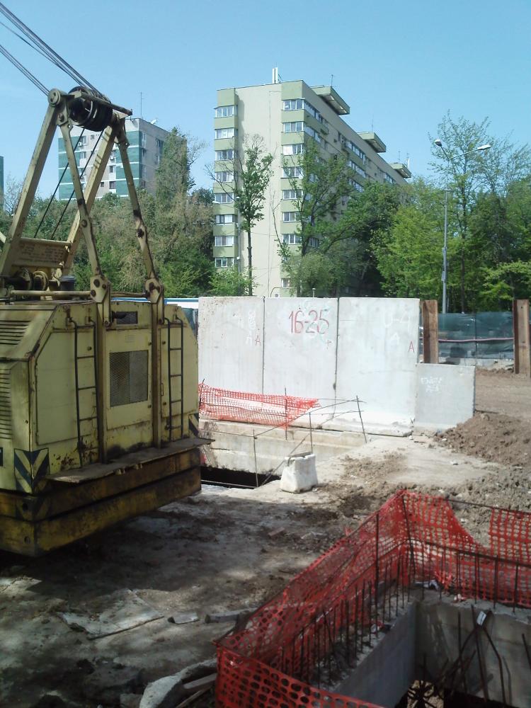 In imagine, coloanele forate de la accesul in viitoare statie de metrou in dreptul blocului de la RD5. Dezgropate partial odata cu devierea canalizarii pe langa acces.
