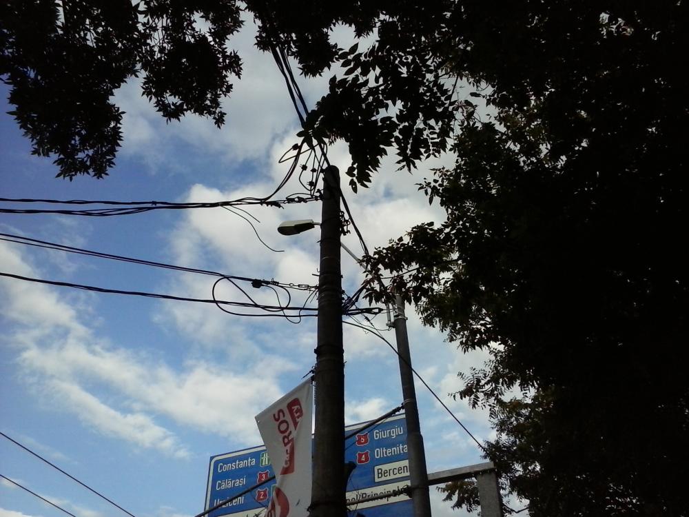 Unde s-a montat iluminat nou cu stalpi plantati in trotuar pe strazile unde existau lampi suspendate de cabluri prinse in cladiri au deomntat lampile vechi dar nu si cablaria veche, care arata ca dreq, in aer, pe mijlocul strazii, ferfenitzata!