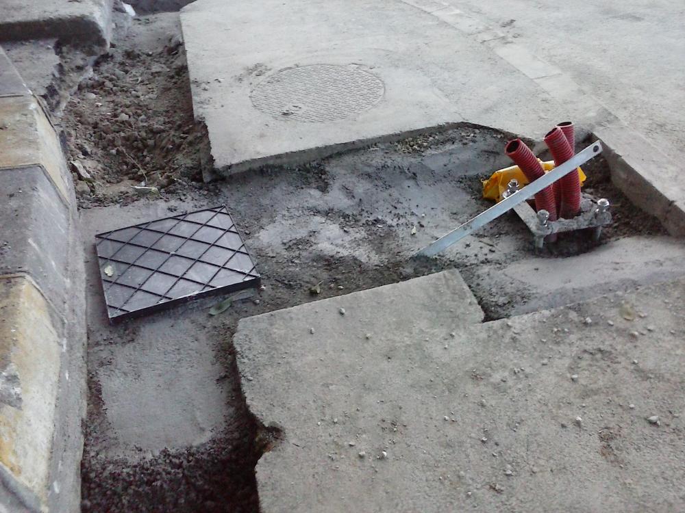 Cabluri protejate cu teava de apa. Ca sa-i bagi in draci pe ceilalti utilitari cand sapa dupa ale lor...