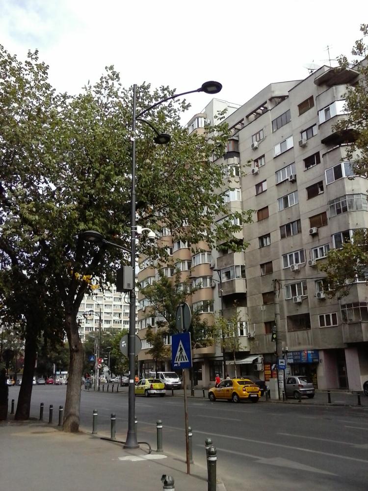 Acelasi tip de lampi si stalpi se regasesc si pe Dorobanti (spre ASE).
