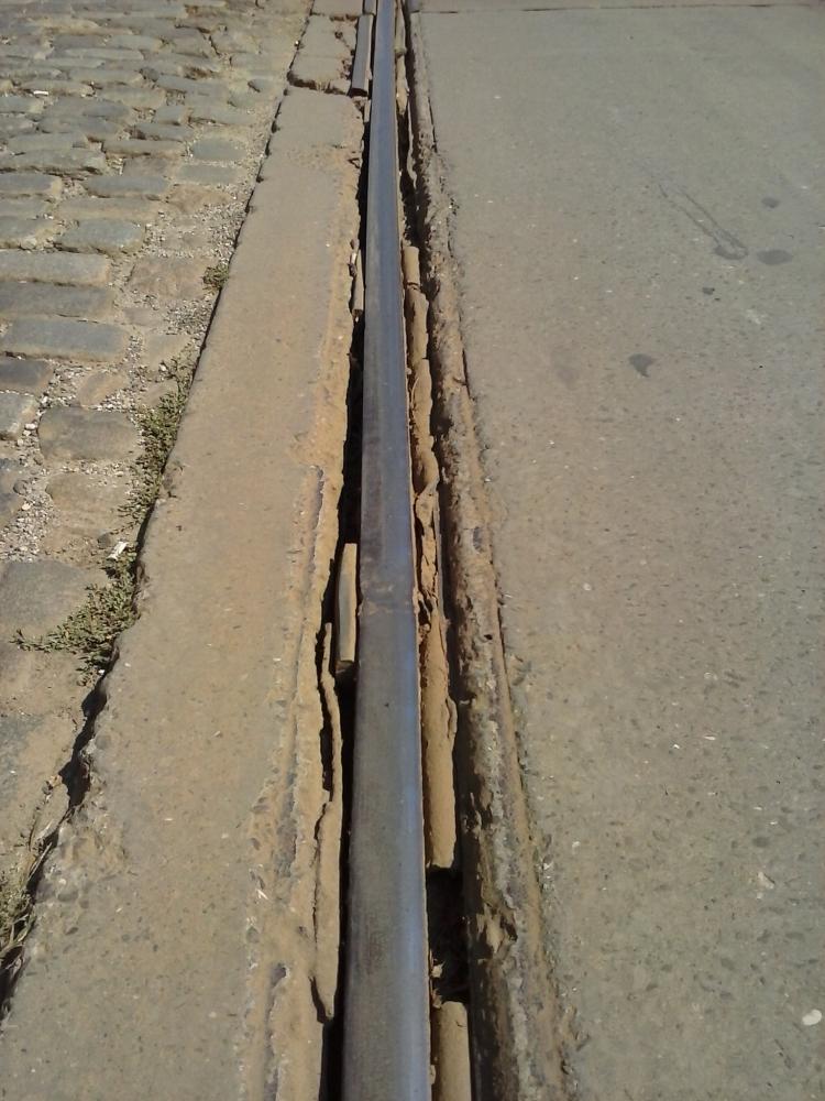 Orisicum improvizatiile "de criza" ai ultimilor 10 ani si poate chiar mai mult conduc la o degradare accelerata si continua a caii de rulare. Inlocuirea cordoanelor continue de cauciuc care tineau sina in canal cu pene din loc in loc ce permit intrarea si acumularea apei sub talpa sinei si in canal pe timp de iarna asigura distrugerea peticelilor extrem de rapid.