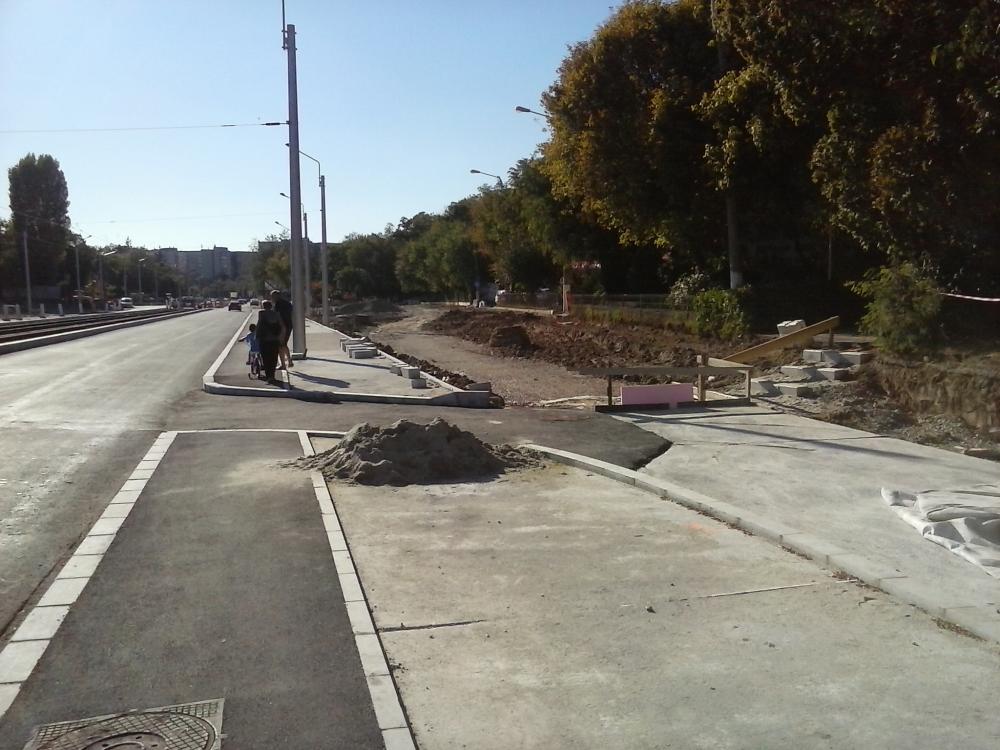 Spre bd. 1 decembrie... se executa o centura de beton (aceeasi solutie folosita prin zona ParkLake) care sa impiedice impingerea bordurilor spre linii.