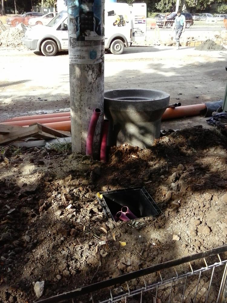 Caminul de varsare a canalizarii deviate de la DT33 in ovoidul de pe centrul bulevardului.