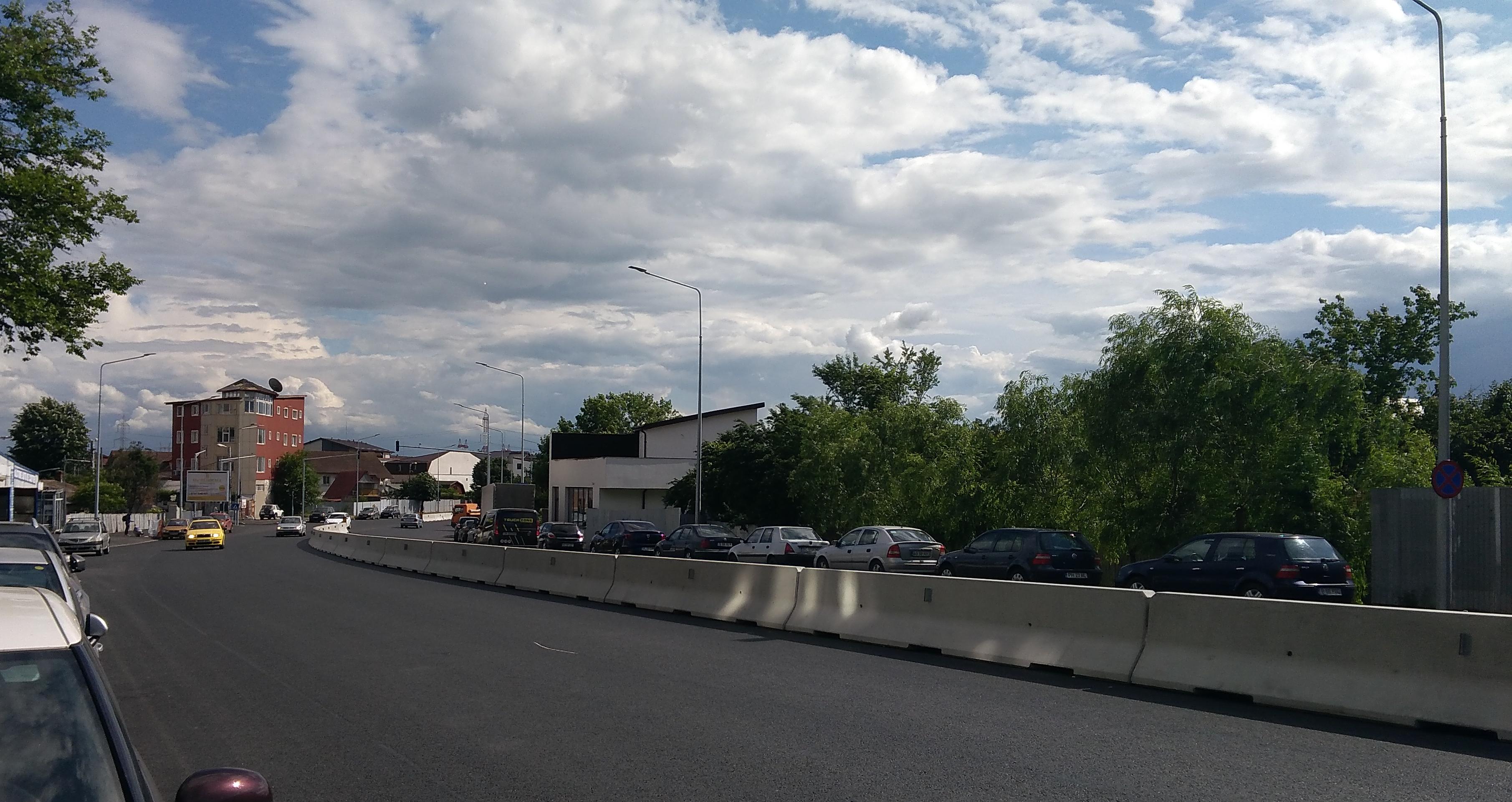 Slab de tot la sol, doua trei capace de canal. Trotuarele de sub pasaj le-au dat cu emulsie si au uitat sa le mai asfalteze. Sus la rampa Hateganu se faceau masurari topo, statia totala pe pasaj, prisma pe marginea rampei.