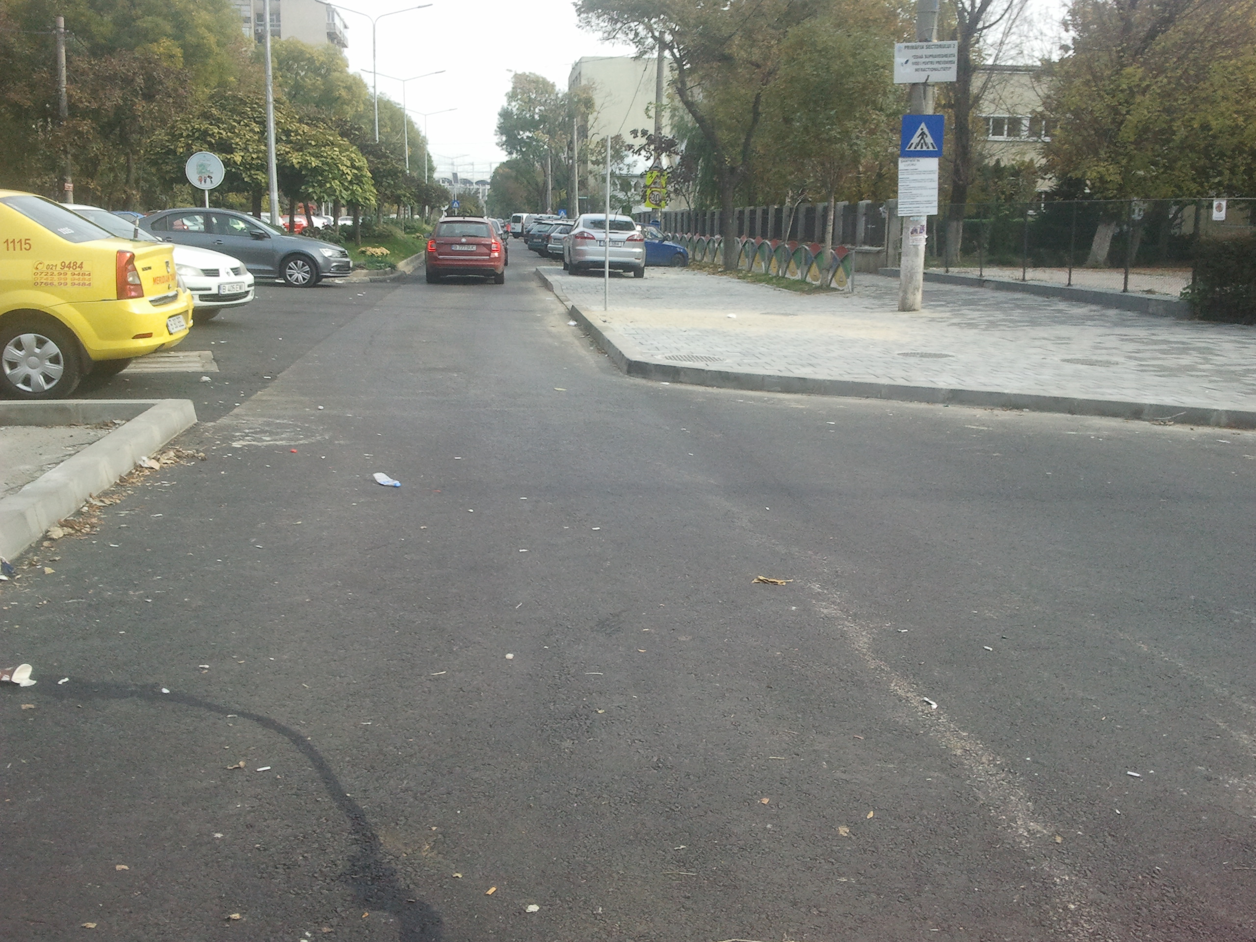 Trotuarul ala ajunsese o rusine, doar o mare parcare plina de denivelari, sparturi de la radet iar din pista de biciclete delimitata cu stalpisori abia a mai ramas cate o urjuma de marcaj sau stalpisor, marturie a existentei trecute. Din pacate na vad nimic de genul parcari in spic astfel incat sa se elimine circulatul masinilor pe trotuar, chestiune care il face neatractiv complet pentru promenada desi are o latime generoasa.
