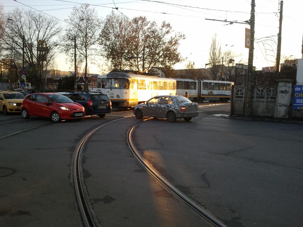 Asta seara #146 (19) a acrosat pe Nerva Traian un vw care a vrut sa intoarca peste liniile de tramvai fara sa se asigure. Avariile vagonului sunt minore si-a continuat cursa dupa 5 minute. De notat ca este peticit proaspat masiv pe langa usi si in general prin mai multe zone ale fustei gri, unde il ciuruise rugina. Sunt curios daca or sa-l revopseasca integral, ar cam avea nevoie.