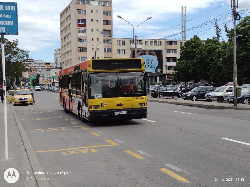 În Pitești încă circulă autobuze MAZ 103. #103 ieri prin fața gării: