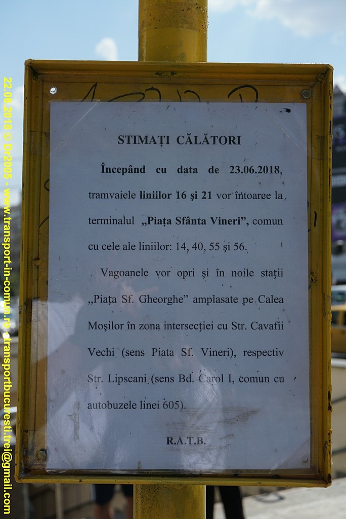 După cum probabil că ştiţi, începând de astăzi a fost desfiinţat capătul de linie de la Piaţa Sfântu Gheorghe, liniile 16 şi 21 fiind mutate la Piaţa Sfânta Vineri. Este interesant că acest terminal a funcţionat aproape neîntrerupt de la introducerea tramvaielor cu cai (1871) şi până în prezent. Desigur, puterea distrugătoare a Fi(a)rei i-a venit şi lui de hac, la fel ca fântânilor de la Piaţa Unirii, care sunt în curs de demolare. Nu contează că a fost modernizat acum câţiva ani, că Bucureştiul oricum încheie toţi anii cu excedent bugetar, deci bani sunt căcălău.