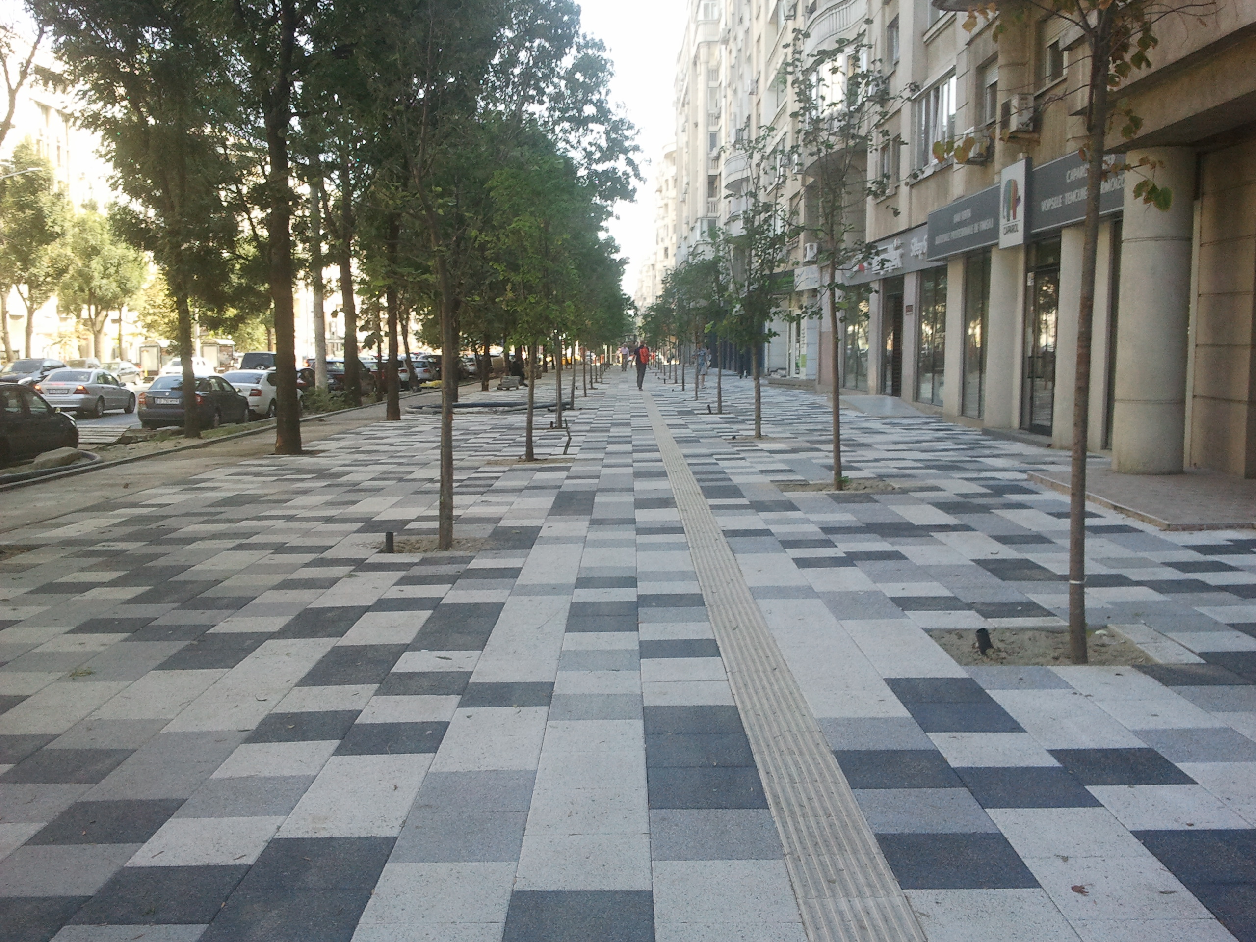 Iata cum arata 'noul' trotuar de pe Bd. Decebal in neo-viziunea negoista din rosie devenita gri.