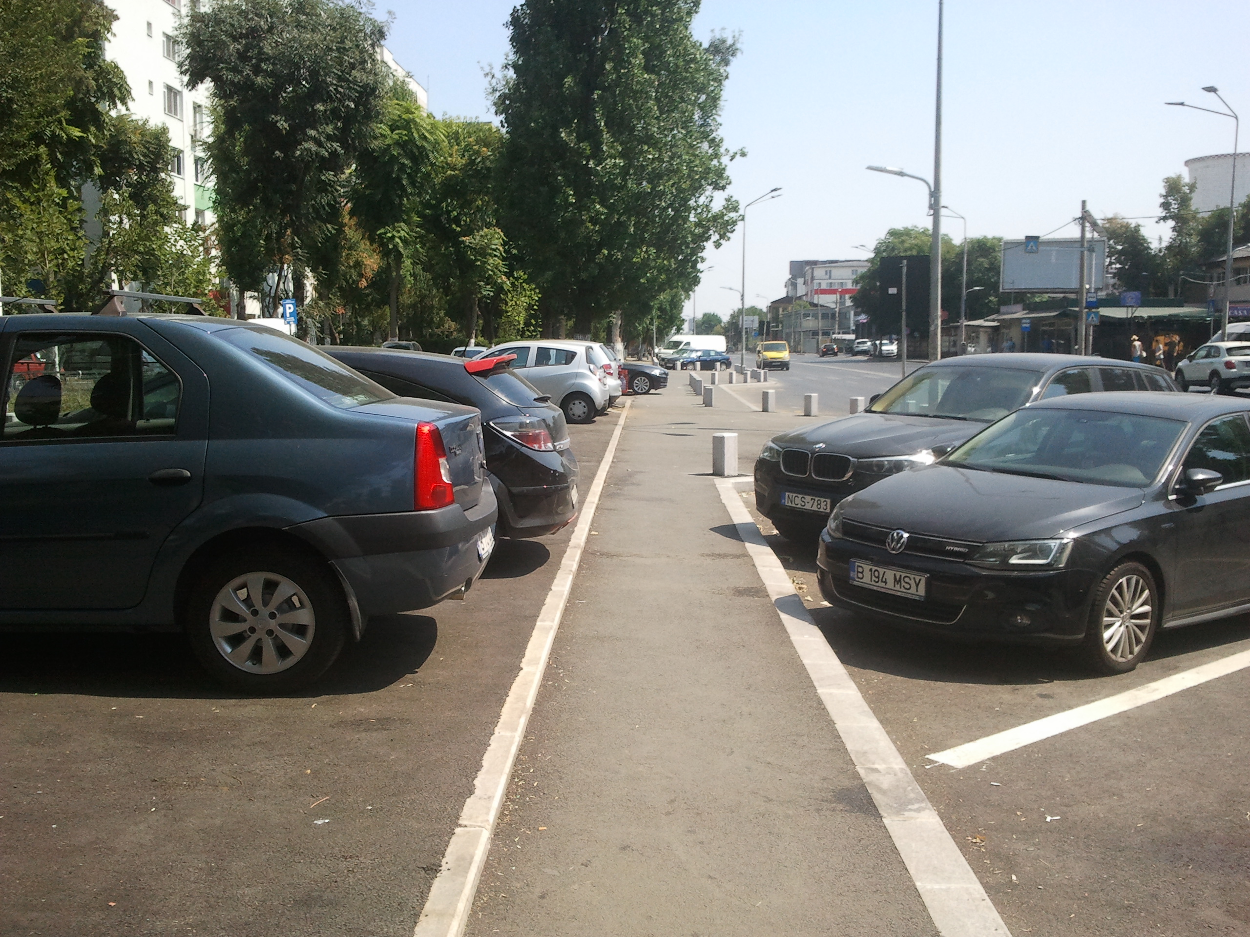 Partea 3. In sectorul Balos se fac parcari nonstop, pe orice petic de pamant care mai era nebetonat. Si se pun bolarzi de granit ca sa nu cada masinile de pe trotuar! :twisted: