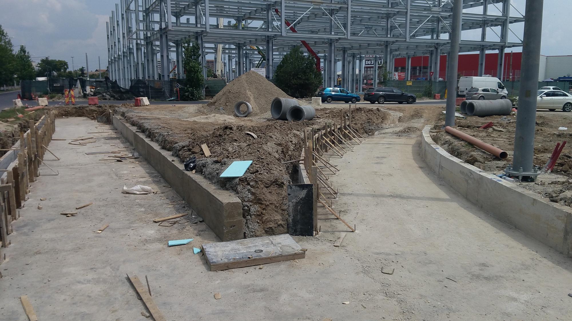 Am profitat de vremea buna sa mai arunc un ochi si aici. Se contureaza traseul tramvaiului (binder asternut in cuva-ghidaj) si imbucurator am vazut o noua fundatie de stalp betonata.