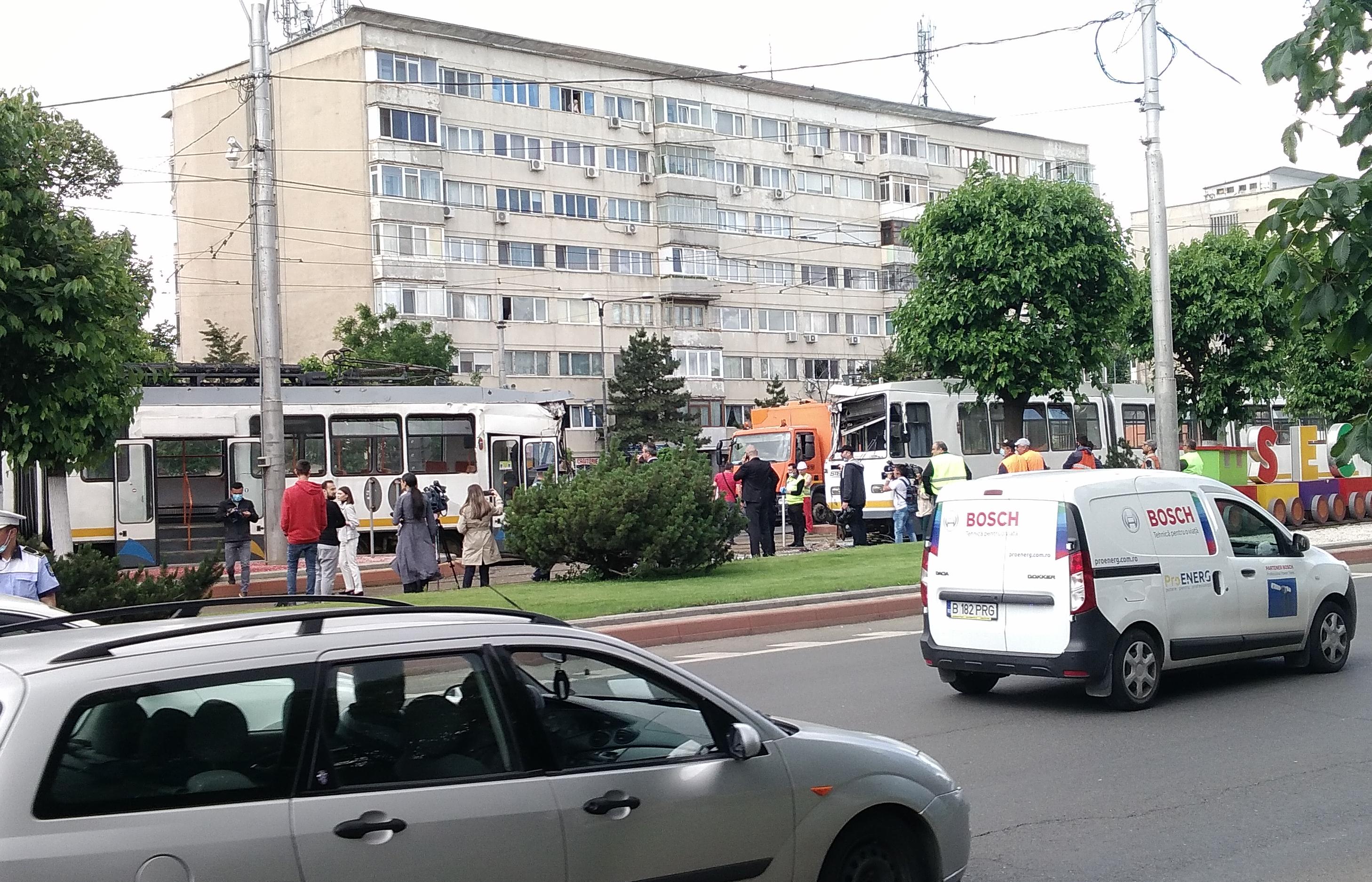 Un accident grav a avut loc miercuri în Capitală, în zona Eroii Revoluției. Două tramvaie s-au ciocnit frontal în sectorul 4. Cel puțin șapte persoane sunt rănite.