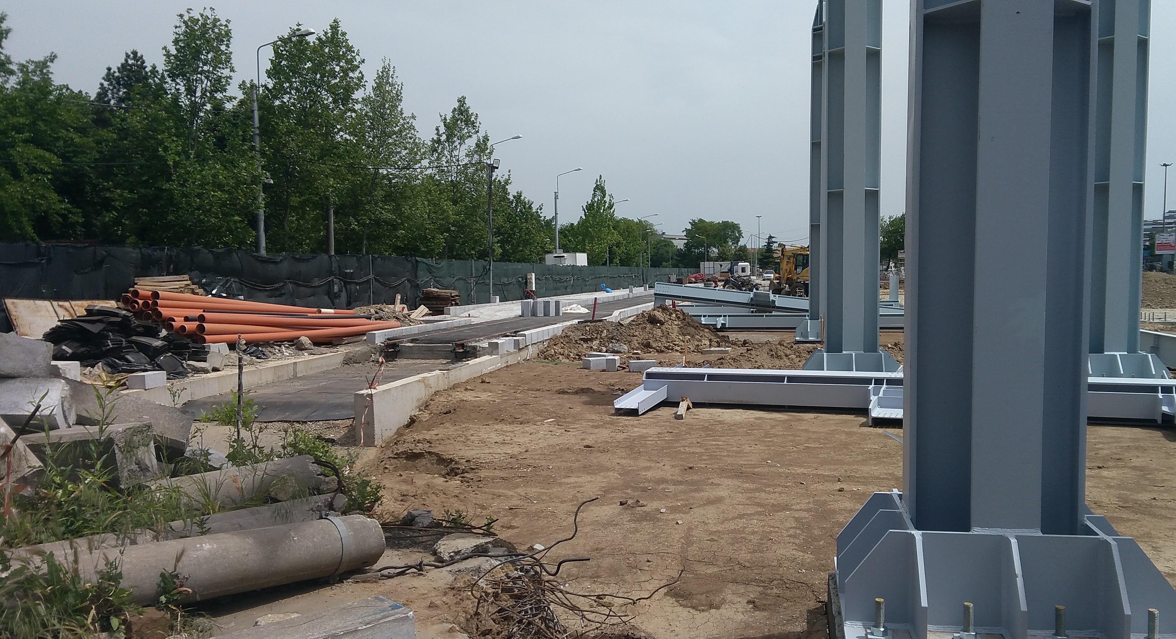 Am profitat de vremea buna sa mai arunc un ochi si aici. Se contureaza traseul tramvaiului (binder asternut in cuva-ghidaj) si imbucurator am vazut o noua fundatie de stalp betonata.
