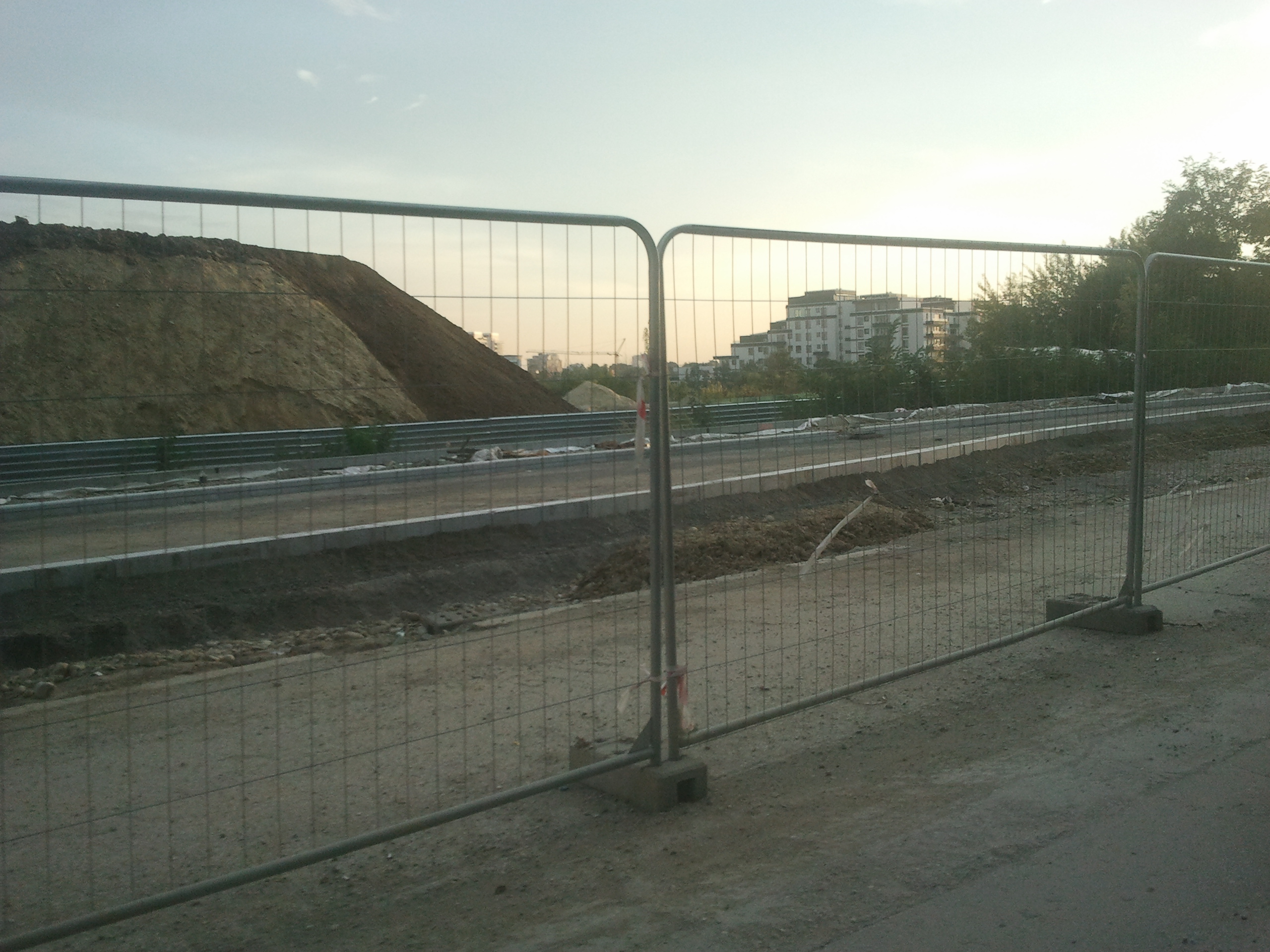 Totusi azi am zis sa profit de ora de varf si de sensul unic pe o singura banda instaurat si sa incerc cateva poze. Carosabilul este de nedescris, gropi peste gropi, praful noriul uscat si molozul sunt la ele acasa, orice basculanta, orice betoniera trece ridica un nor dens de praf care poate bloca chiar si jumatate din lumina directa a soarelui. Cei care circula cu masinile pe aceasta ingustare curenta sunt cu siguranta maestri in masochism, oricat de confortabil ar fi automobilul in cauza. Practic dintr-un kilometru iesi cu masina ca si cum ai fi mers pe camp prin tot colbul.