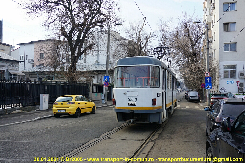 Câteva poze cu #3303 pe linia 44, în intersecţia Str. Ionel Perlea cu Str. Gr. Cobălcescu şi în intersecţia Str. Gr. Cobălcescu cu Cal. Berzei: