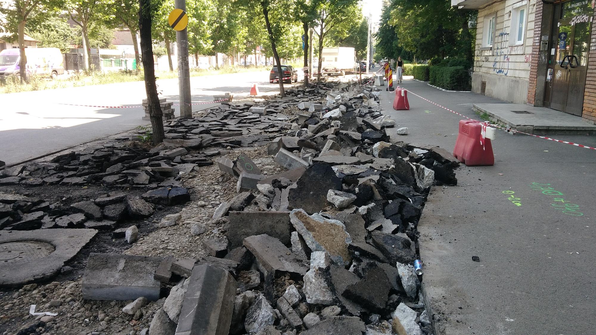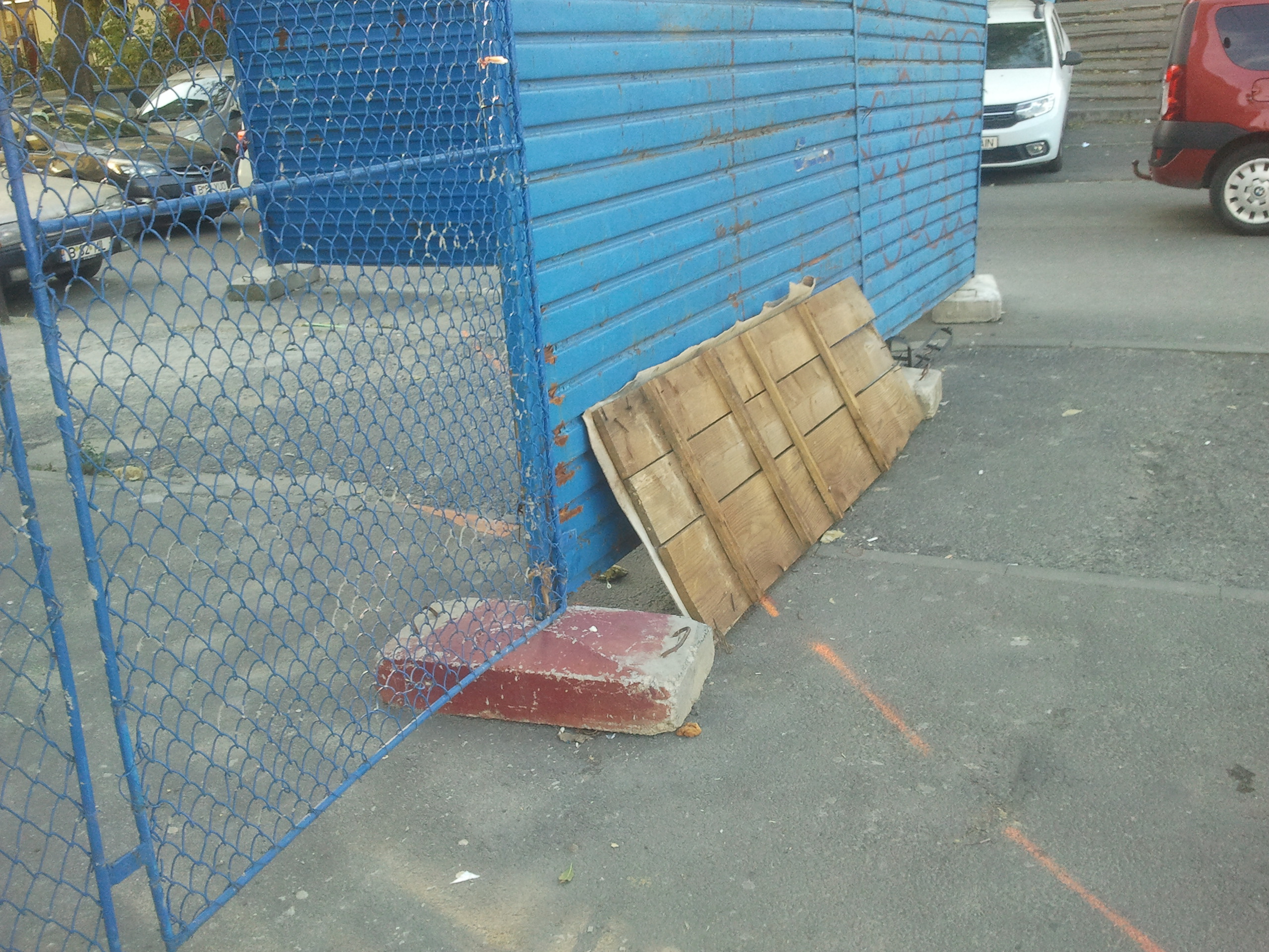 AIci se acorda premiul "not my f**king job" pentru marcajele topo trasate pe moloz si materiale lasate de izbeliste...