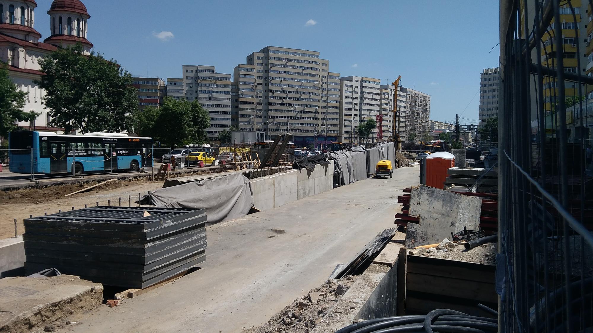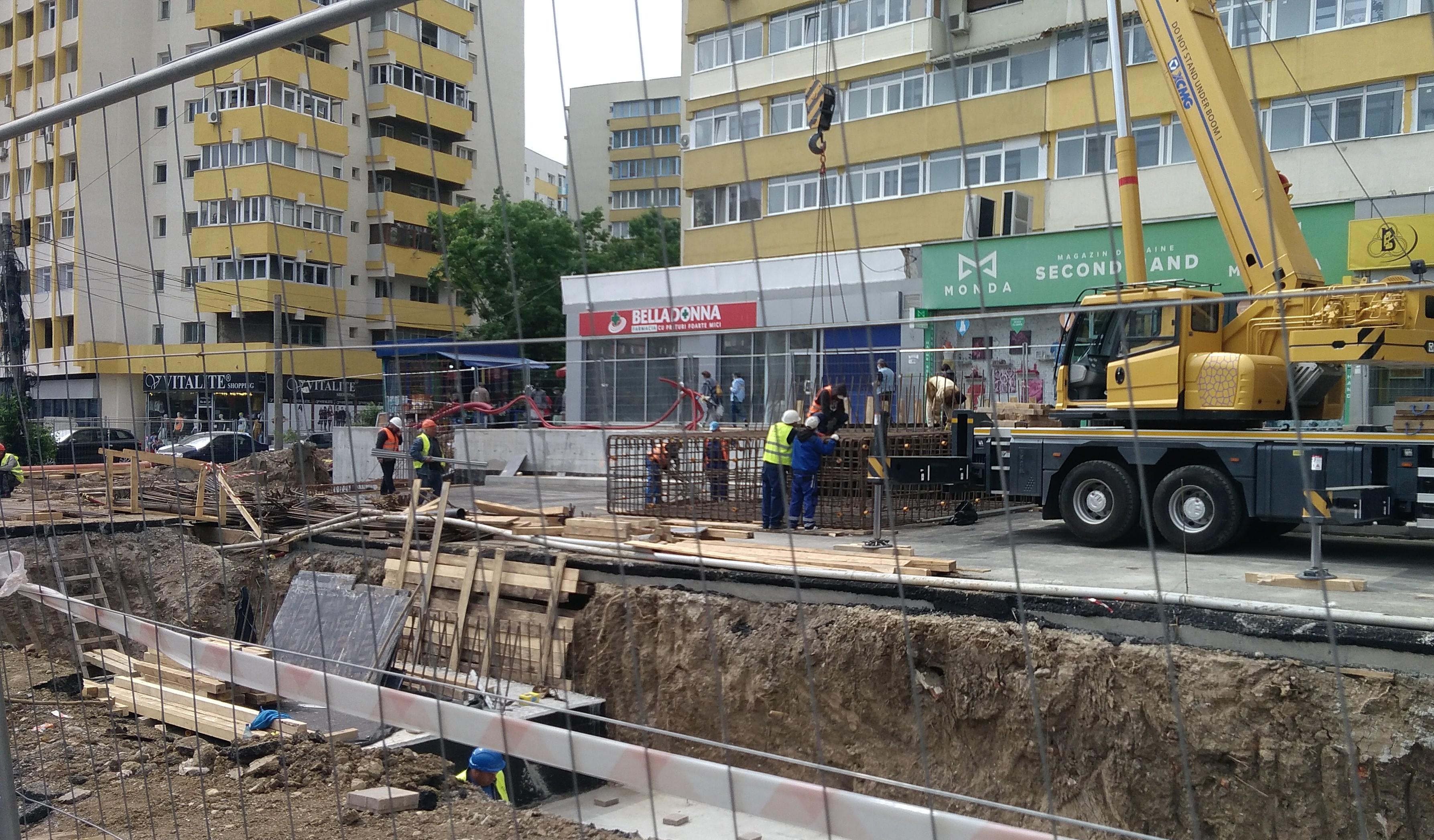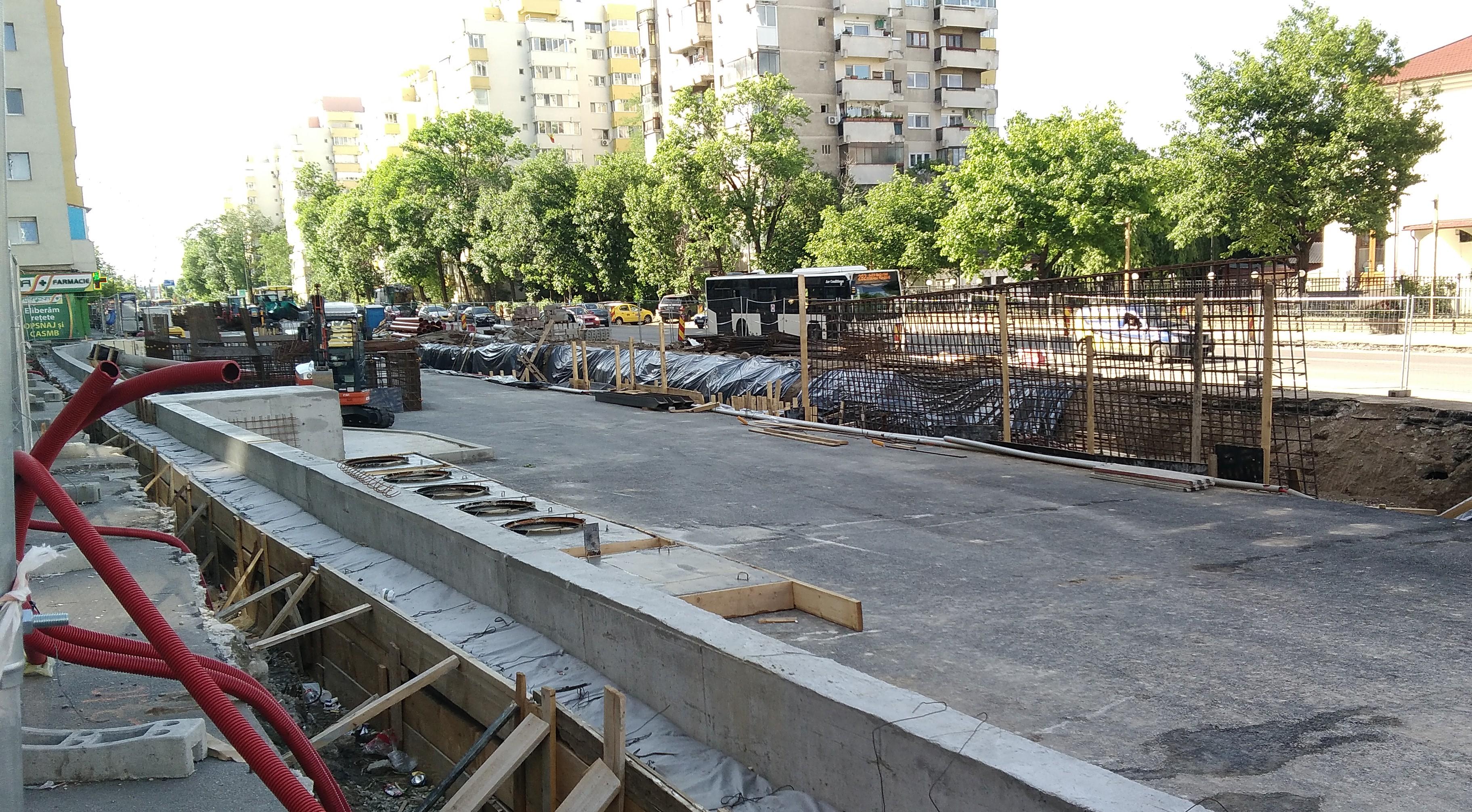 Au inceput sa armeze ai fundatiile zidului stang al rampei dinspre Tei. La rampa dinspre Delfinului este creionata in portocaliu pe asfalt pozitia culeei.
