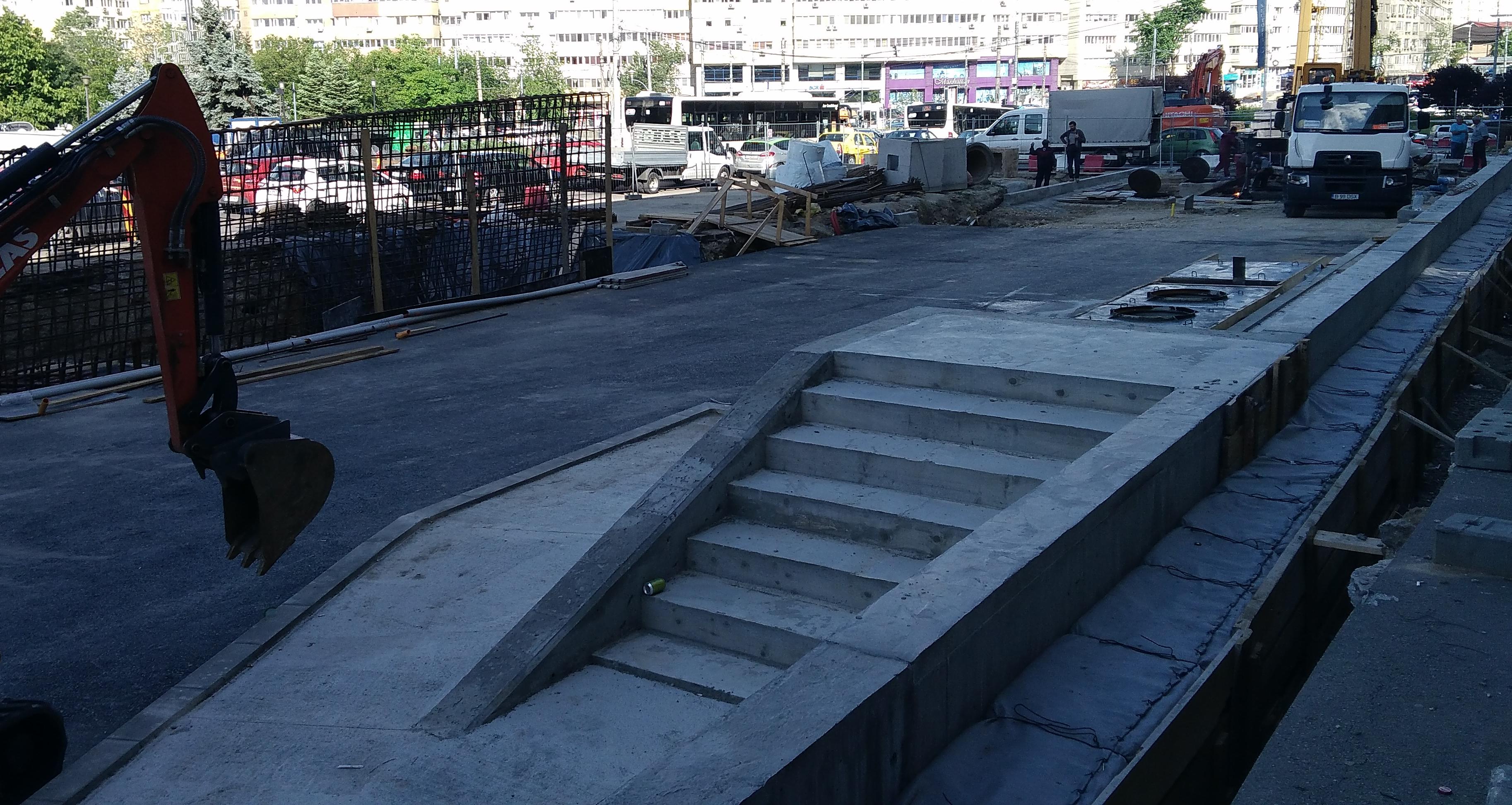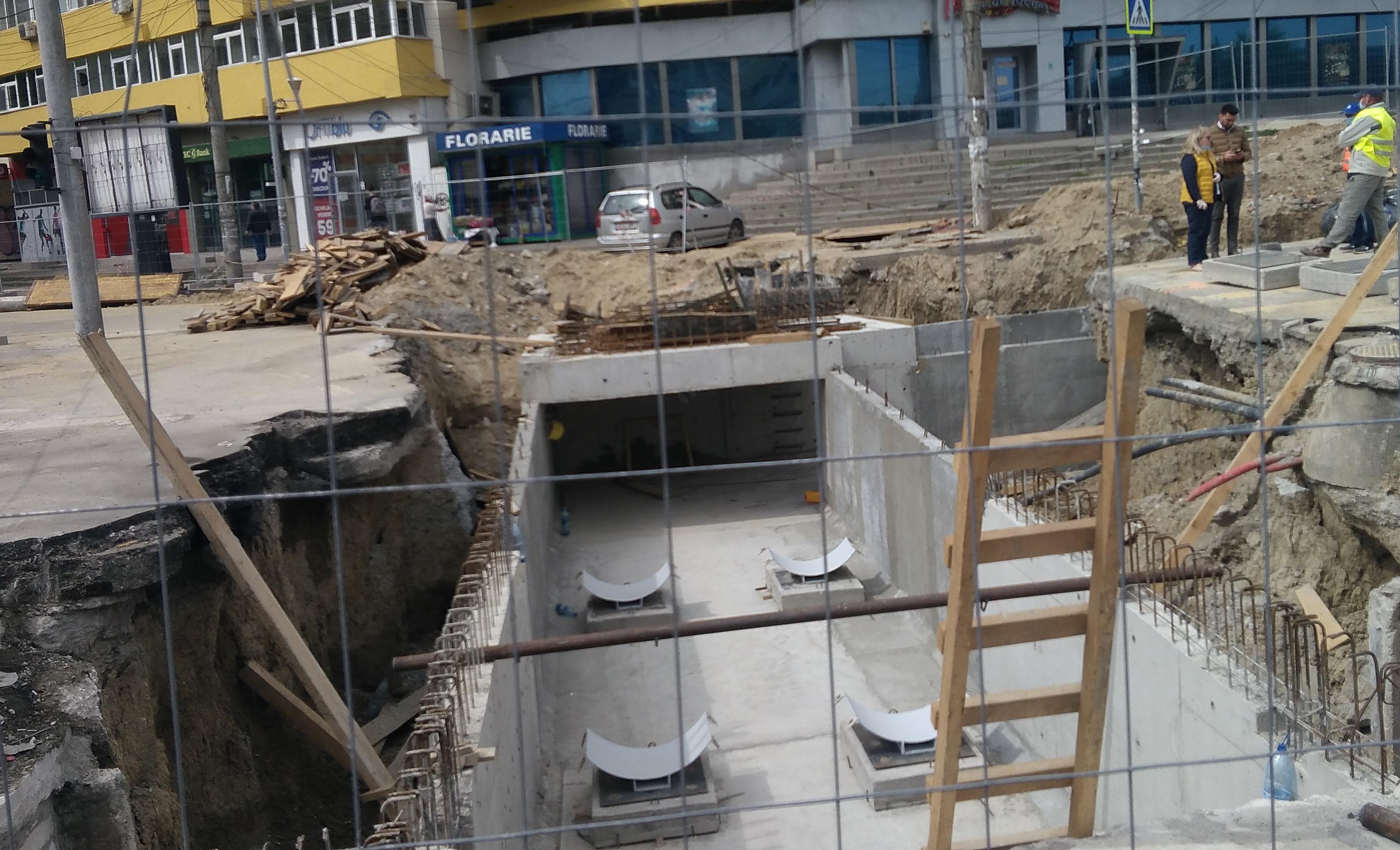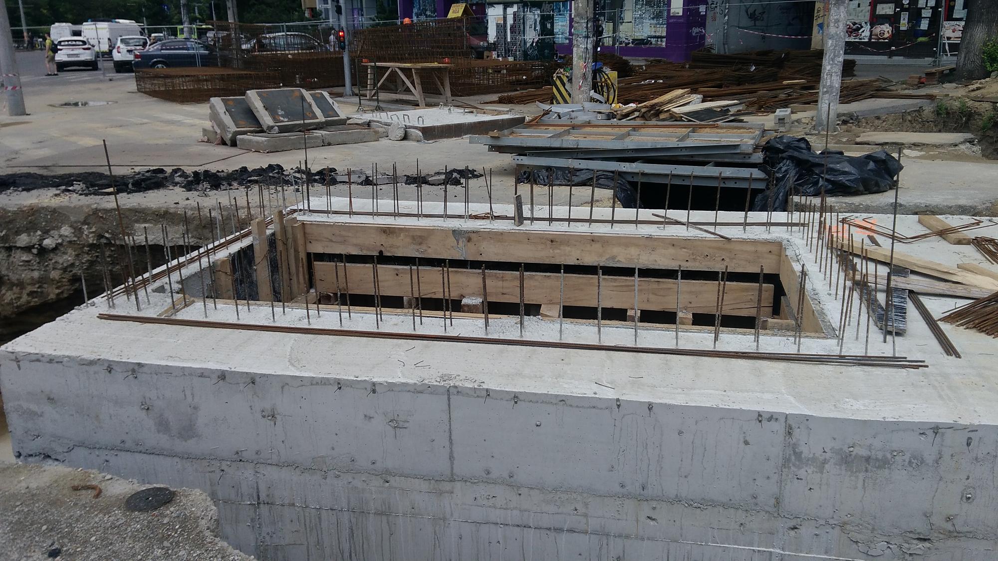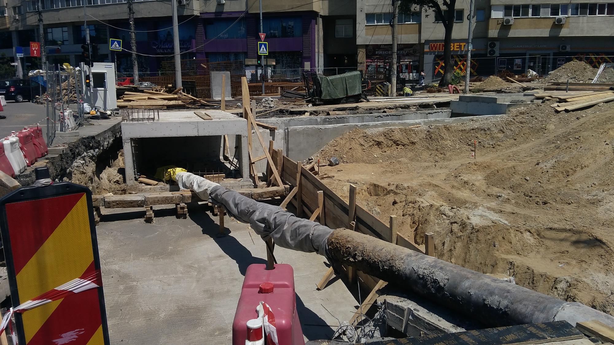 Au inceput sa armeze ai fundatiile zidului stang al rampei dinspre Tei. La rampa dinspre Delfinului este creionata in portocaliu pe asfalt pozitia culeei.