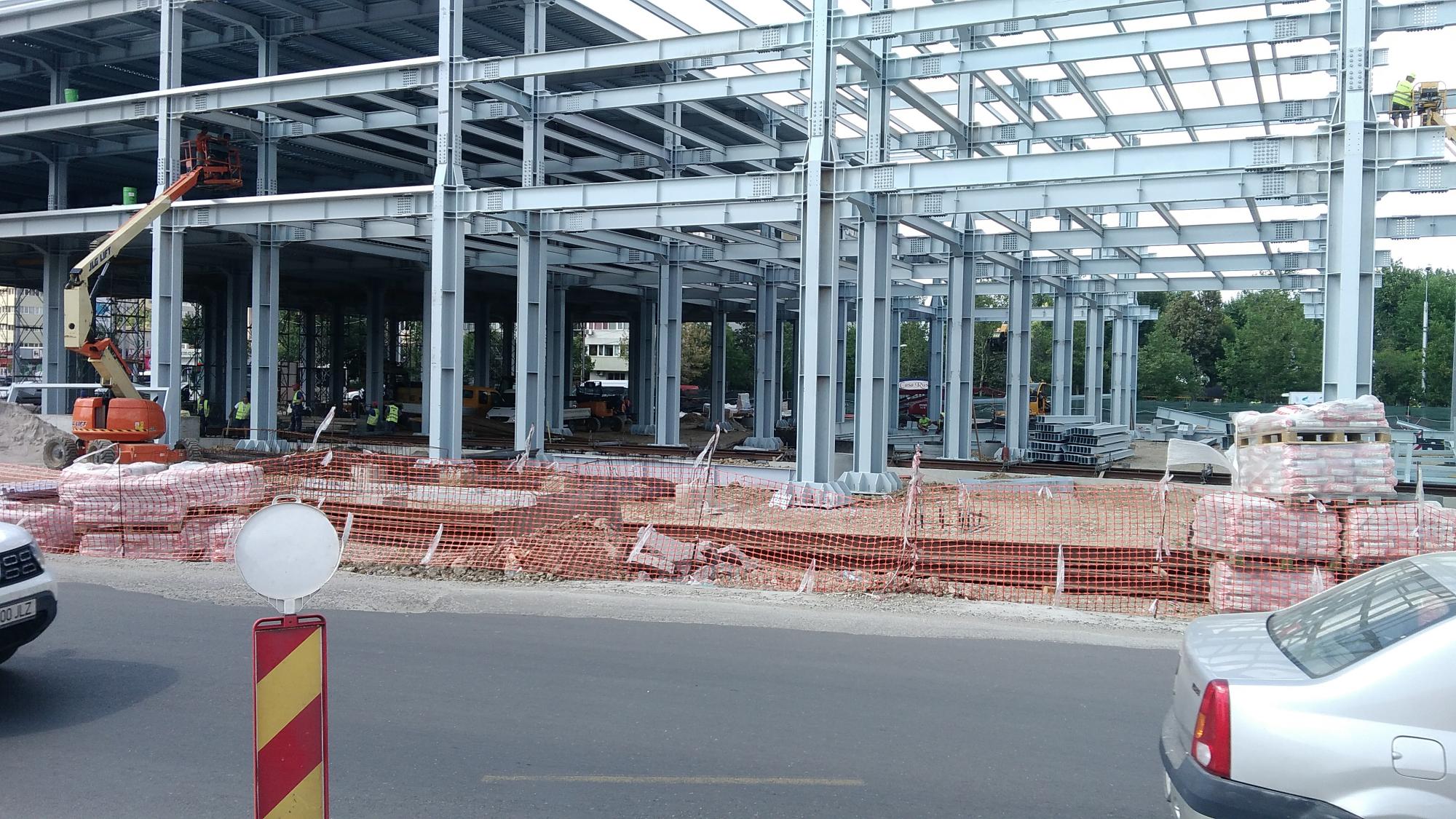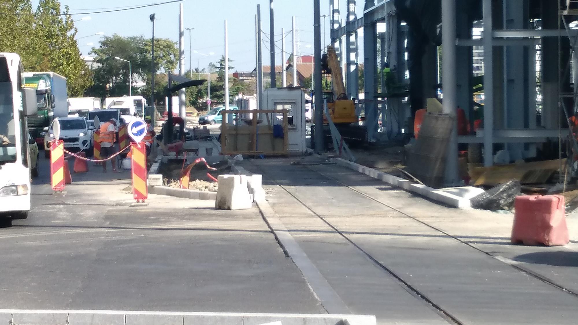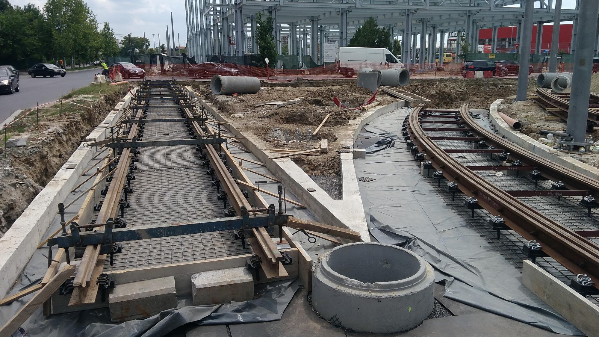 Au avansat bine cu linia de tramvai, este betonata de la randul 3 de stalpi pana la randul 9. Daca muta circulatia pe breteaua noua spre Vergului practic au eliberat amplasamentul pentru restul de linii tramvai de dupa macaz. Mai ramane apoi racordul in zona rebrusmentului actual.
