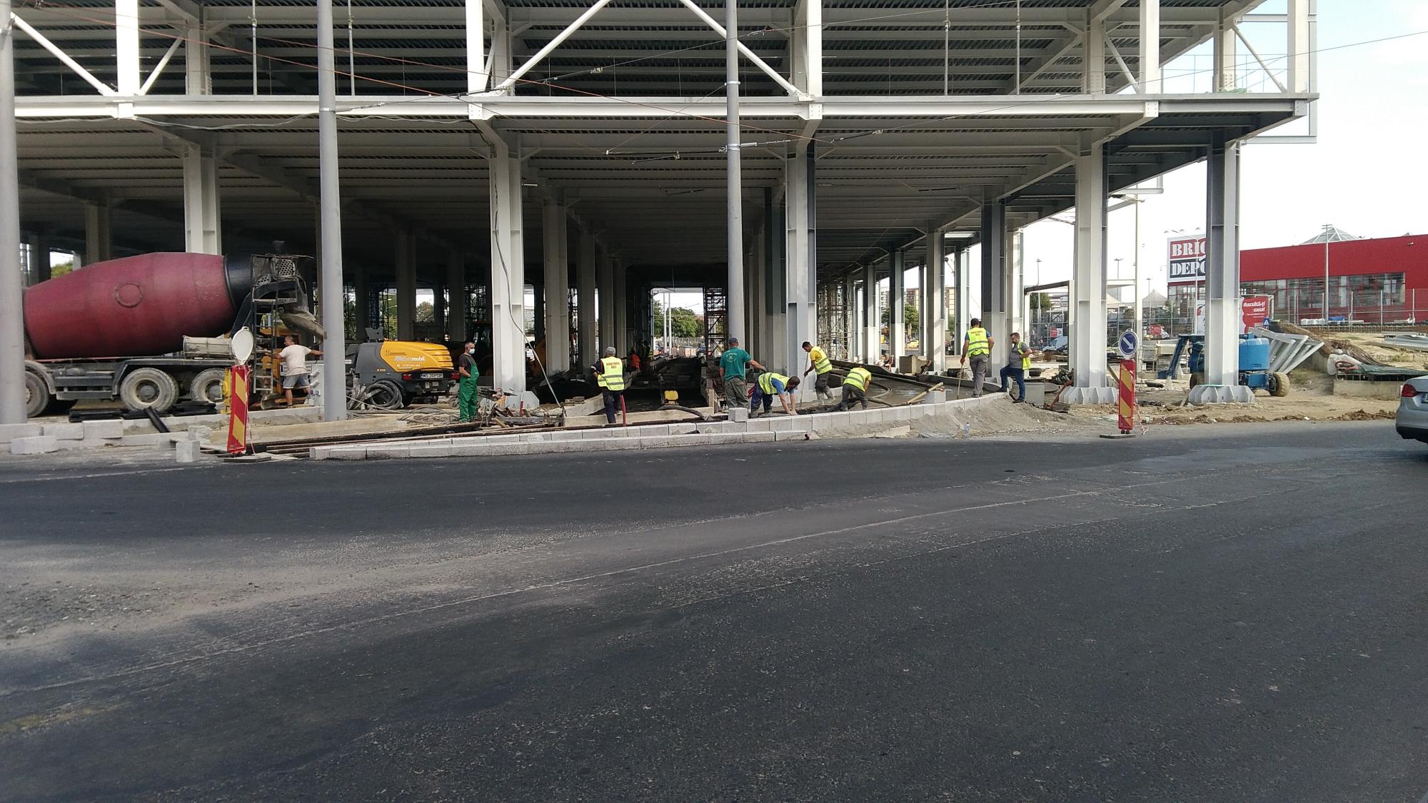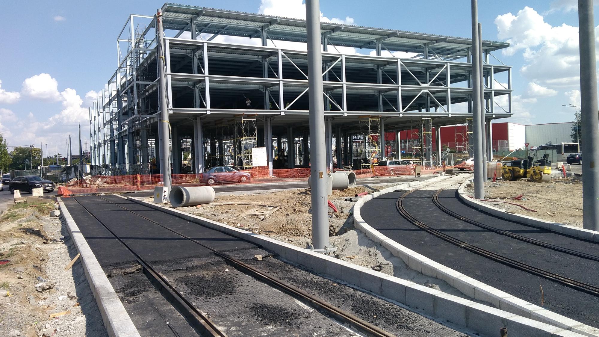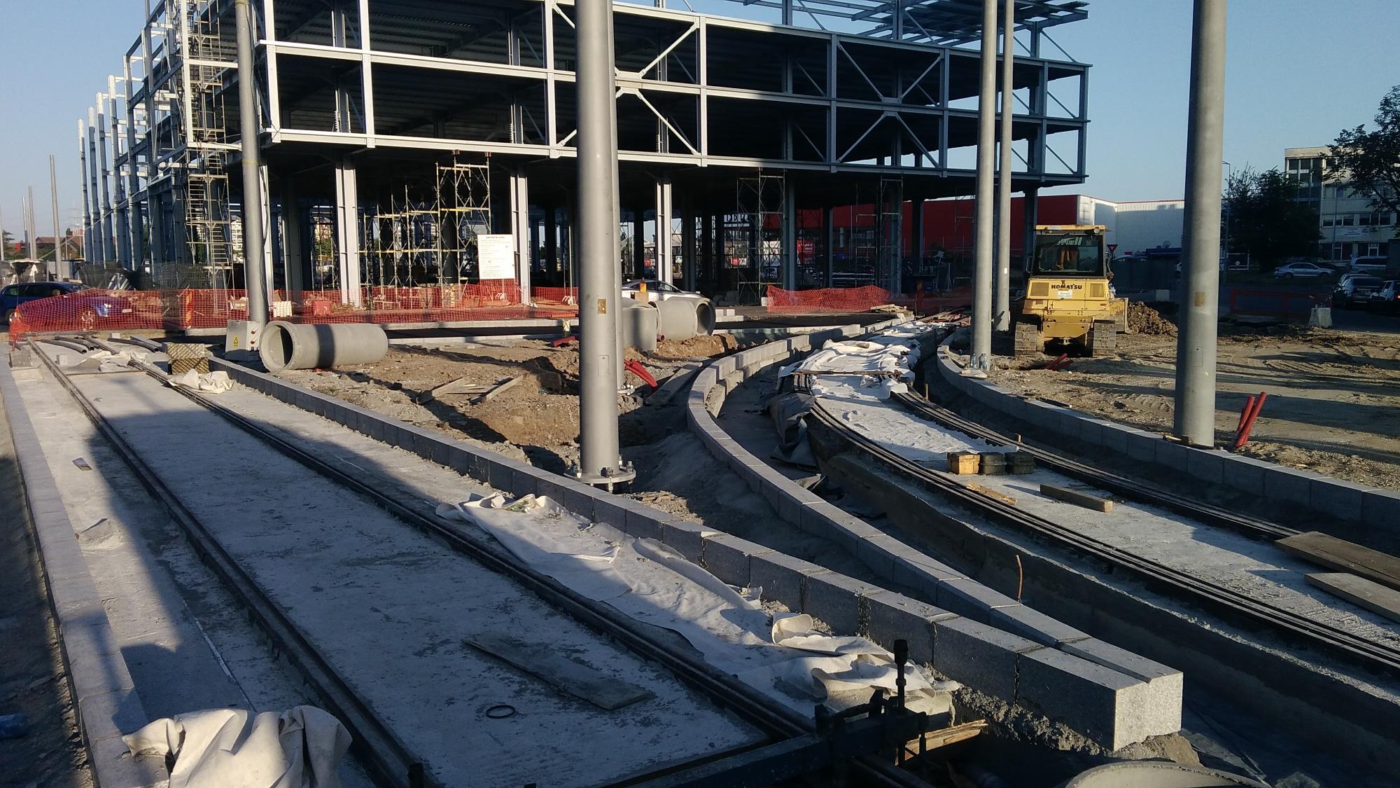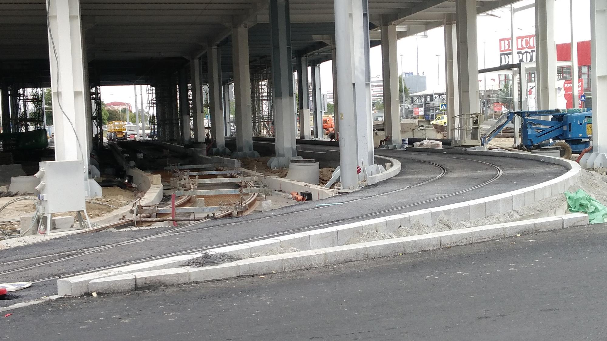 Au mai montat un segment de linie spre intrarea in terminal. Din pacate in terminal nu s-au asezat inca sine la pozitie pentru ca materialele sunt depozitate... cam peste tot, inclusiv pe traseul tramvaiului.