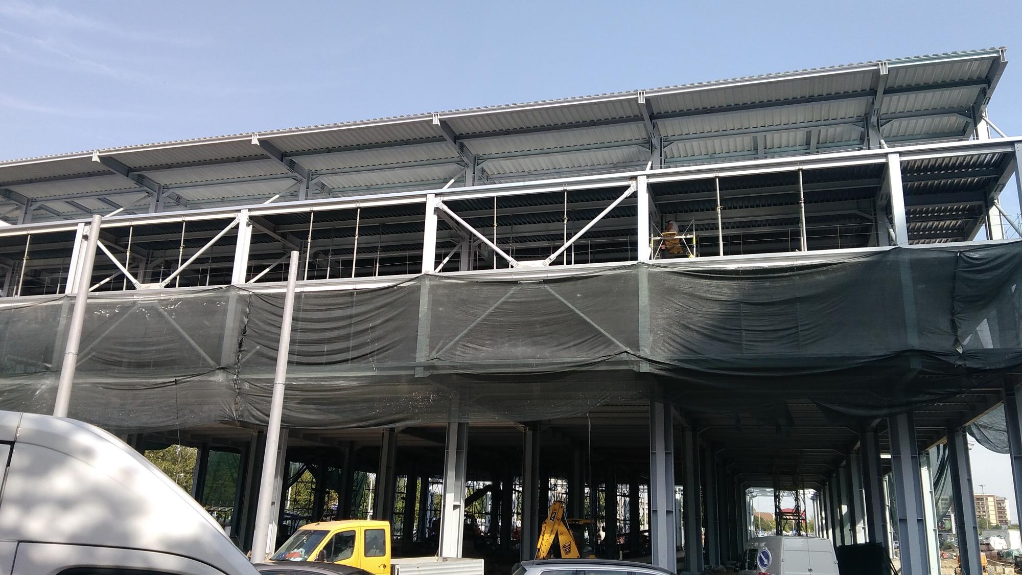 Avem o parte din cupru (adica firul de contact) intins prin parterul parcarii. Este vorba de zona de intrare, zona celor doua peroane si curba de dupa iesire. Tocmai trageau cuprul si in zona statiei de plecare "la copertine".