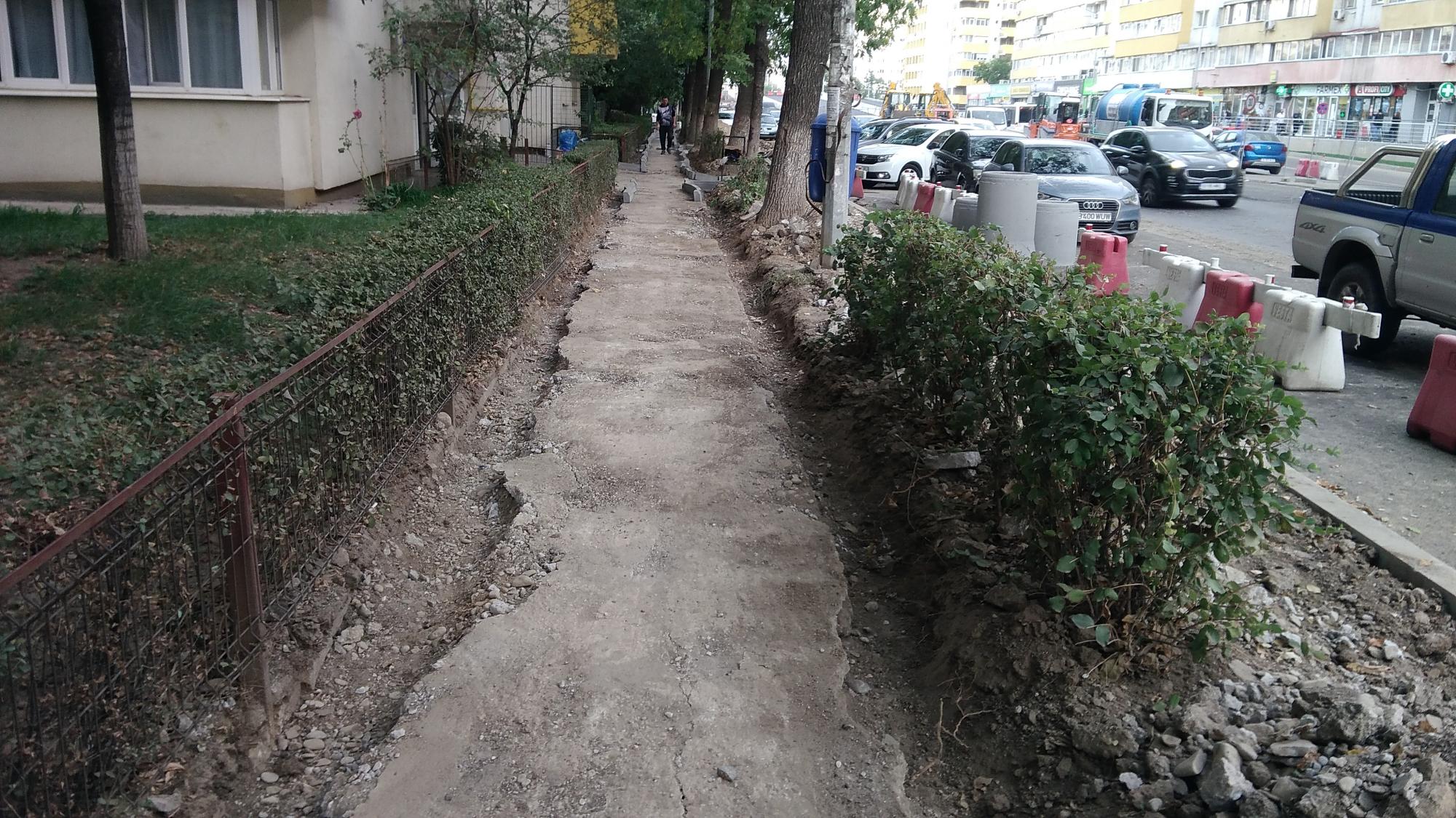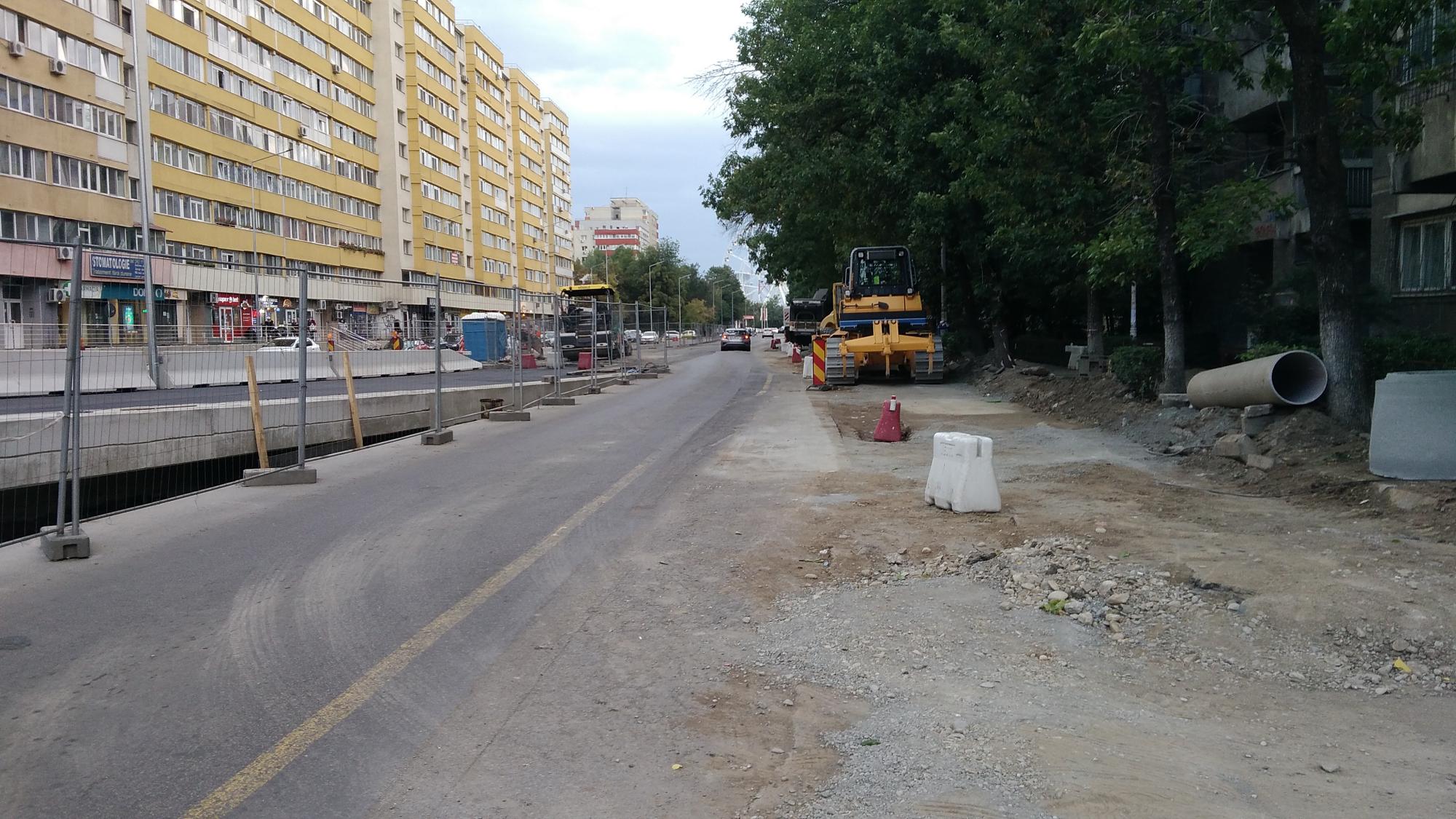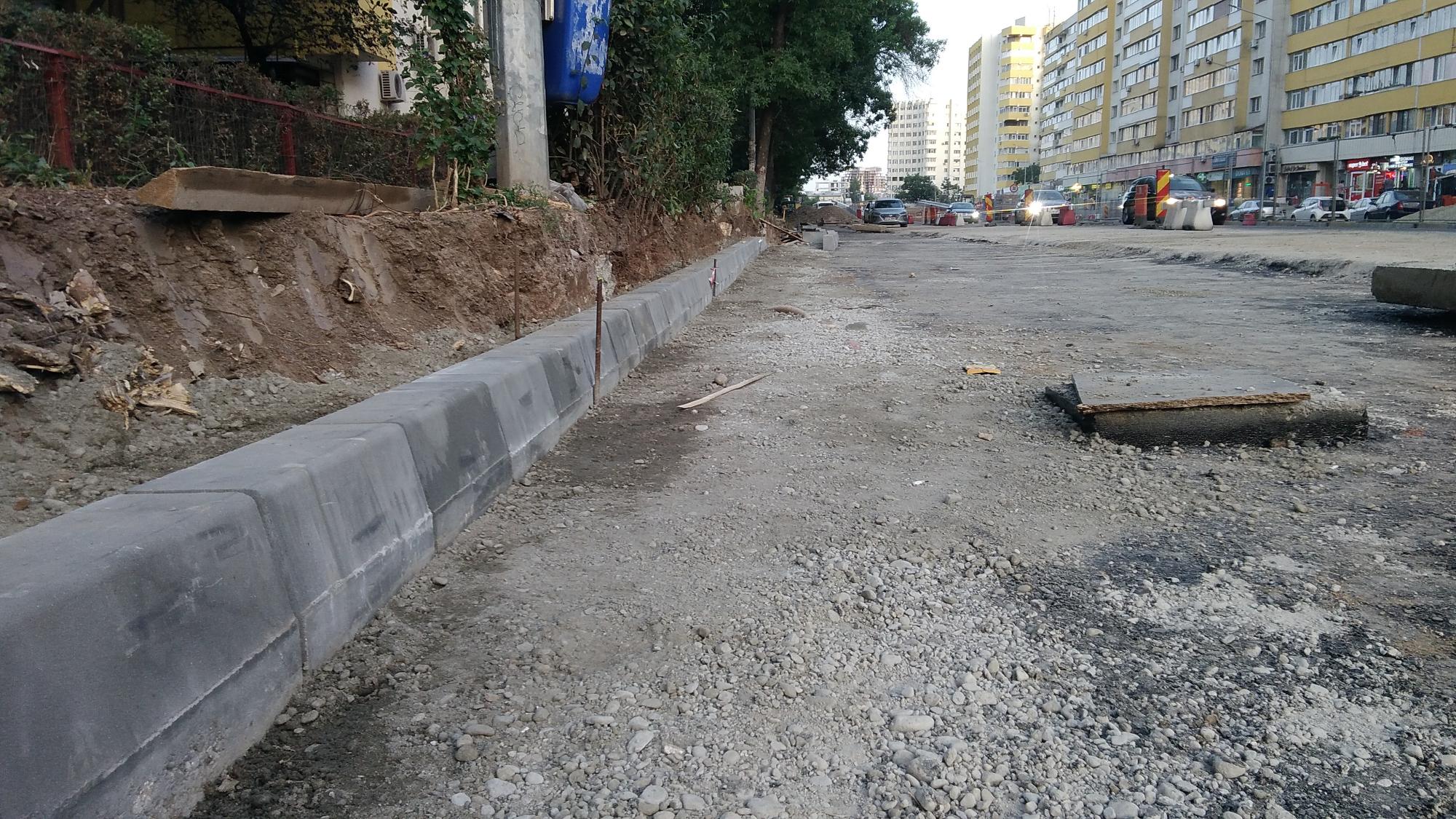 Pe partea dinspre Tei nu prea mai este front de lucru, au decopertat asfaltul de pe trotuarul de pe partea blocurilor de la parc si cam atat. Au mai zburat din masinile parcate spre Petricani ca sa mute bordura in continuare. Au mai avansat putin cu canalizarea paralel cu biserica. Se refac scarile cu rampa noua la coborarea in Ion Berindei de pe promenada inalta.