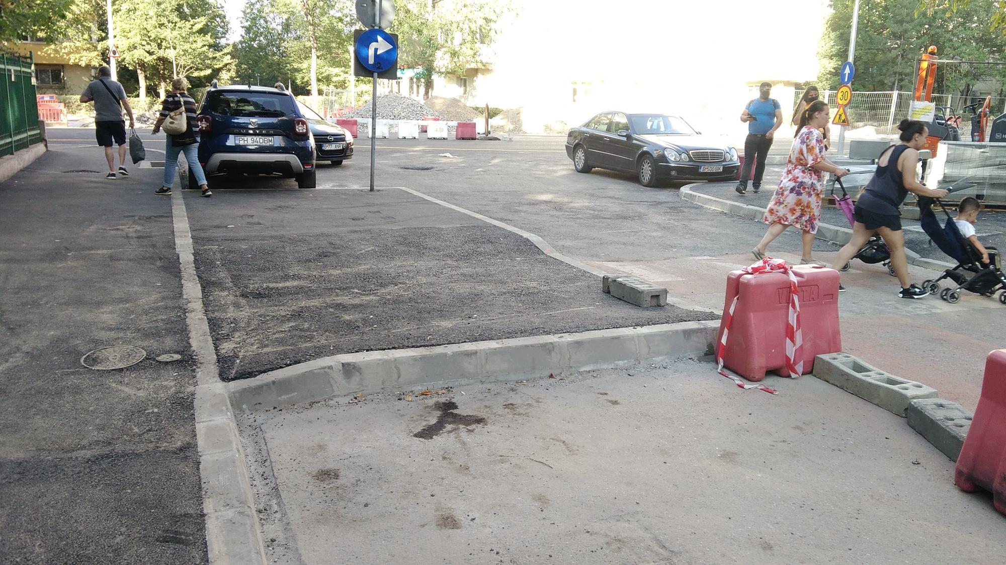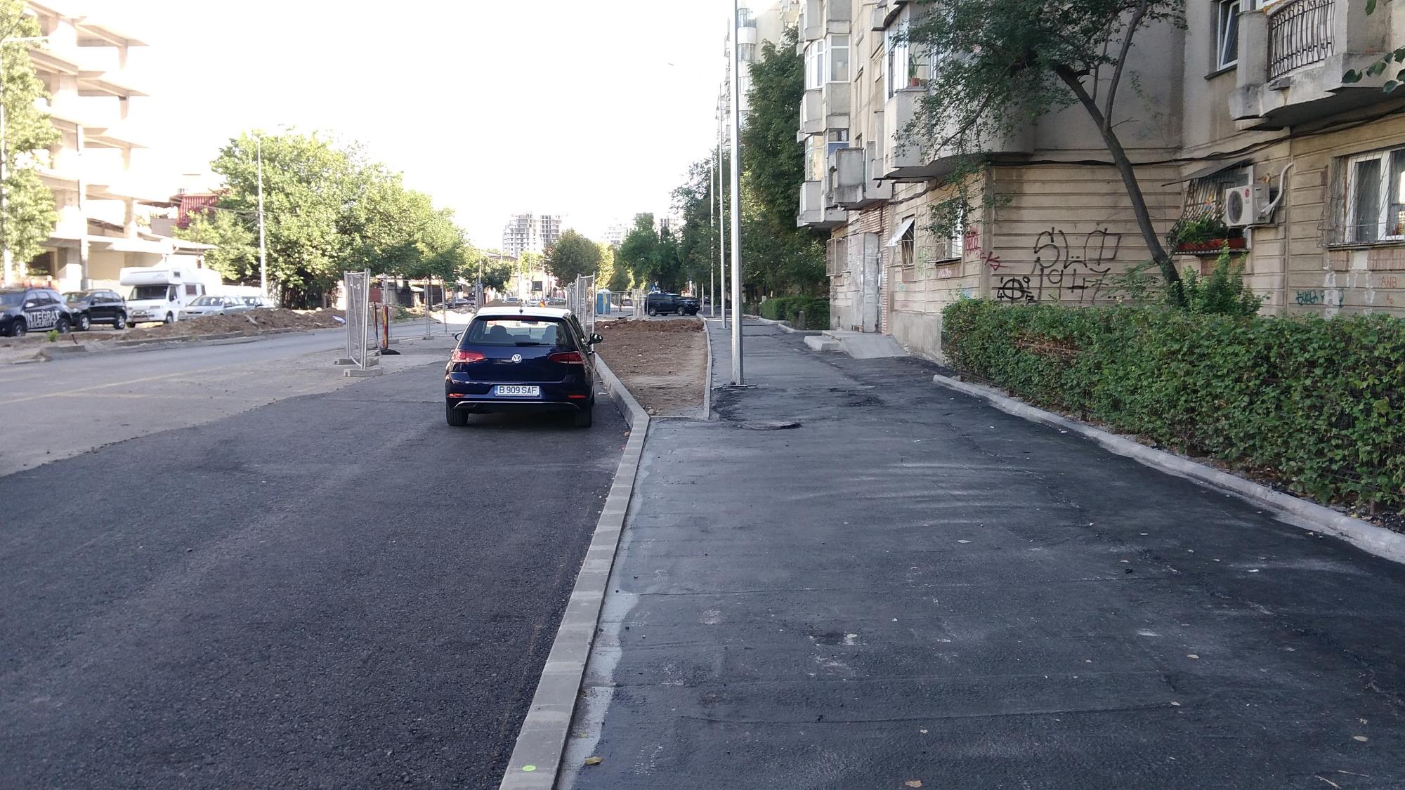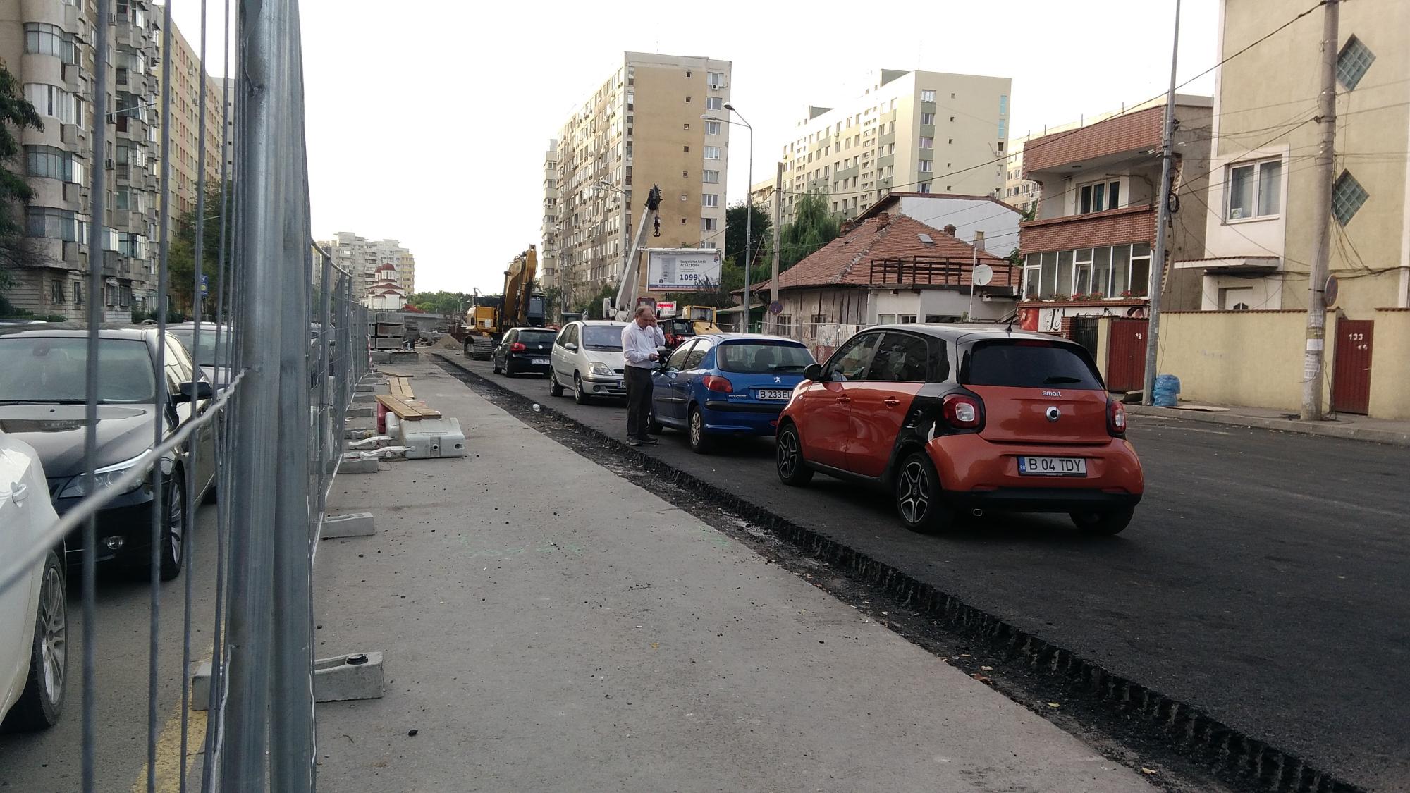 Pe partea dinspre Tei nu prea mai este front de lucru, au decopertat asfaltul de pe trotuarul de pe partea blocurilor de la parc si cam atat. Au mai zburat din masinile parcate spre Petricani ca sa mute bordura in continuare. Au mai avansat putin cu canalizarea paralel cu biserica. Se refac scarile cu rampa noua la coborarea in Ion Berindei de pe promenada inalta.