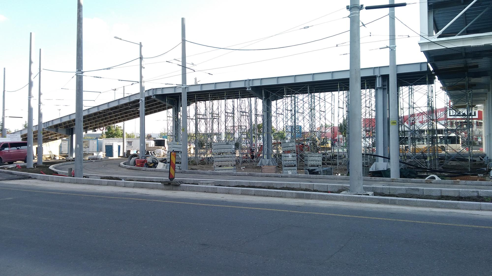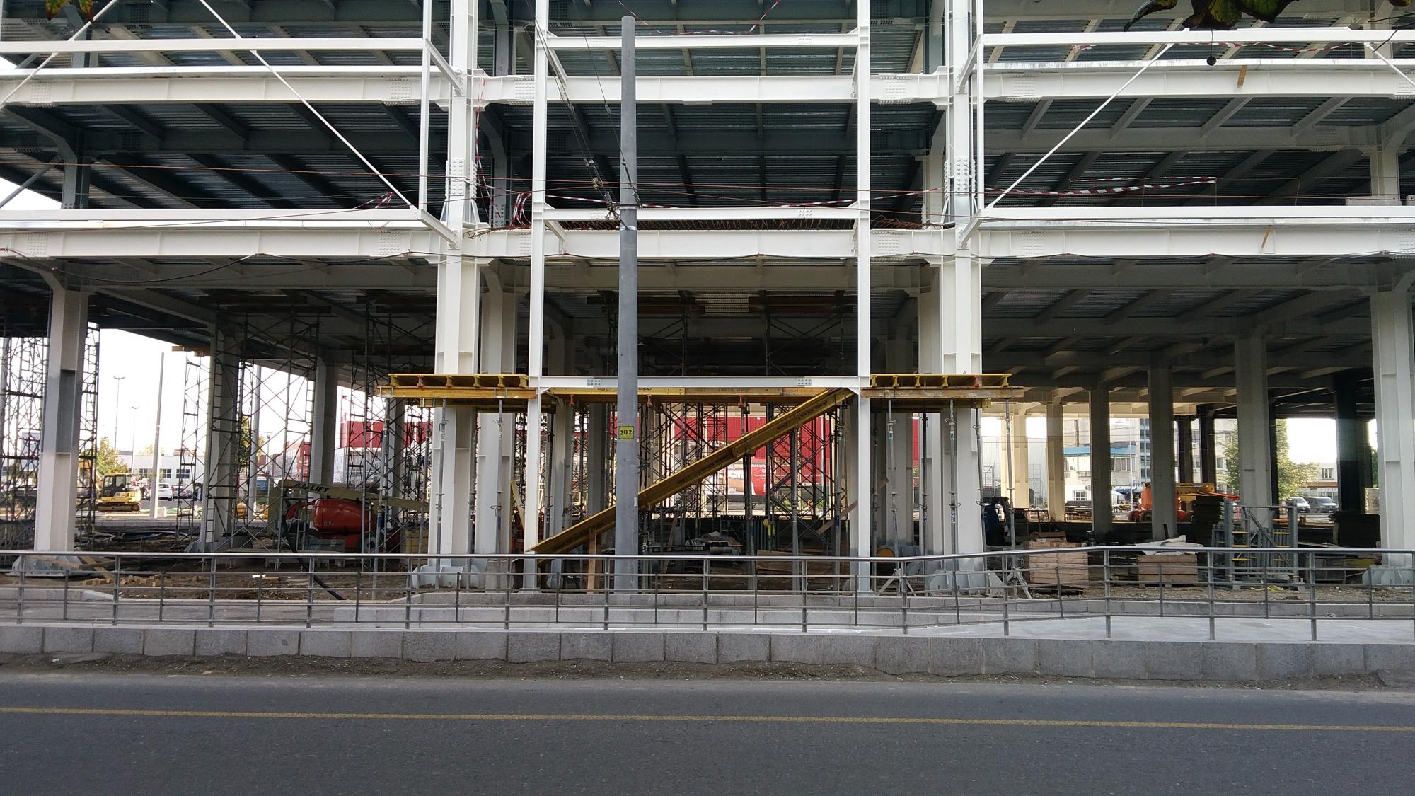 Au mai avansat pe la scheletul fatadei dinspre parcul Cosmos si au inceput sa puna esafodaj la rampa de iesire montata peste bucla tramvaiului, semn ca se apuca de planseu.