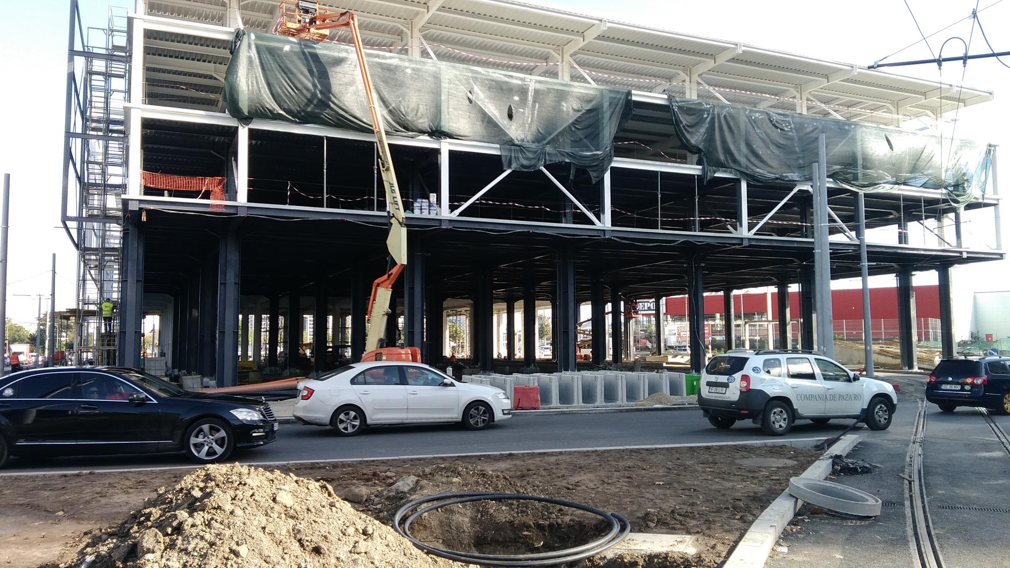 Au mai avansat pe la scheletul fatadei dinspre parcul Cosmos si au inceput sa puna esafodaj la rampa de iesire montata peste bucla tramvaiului, semn ca se apuca de planseu.