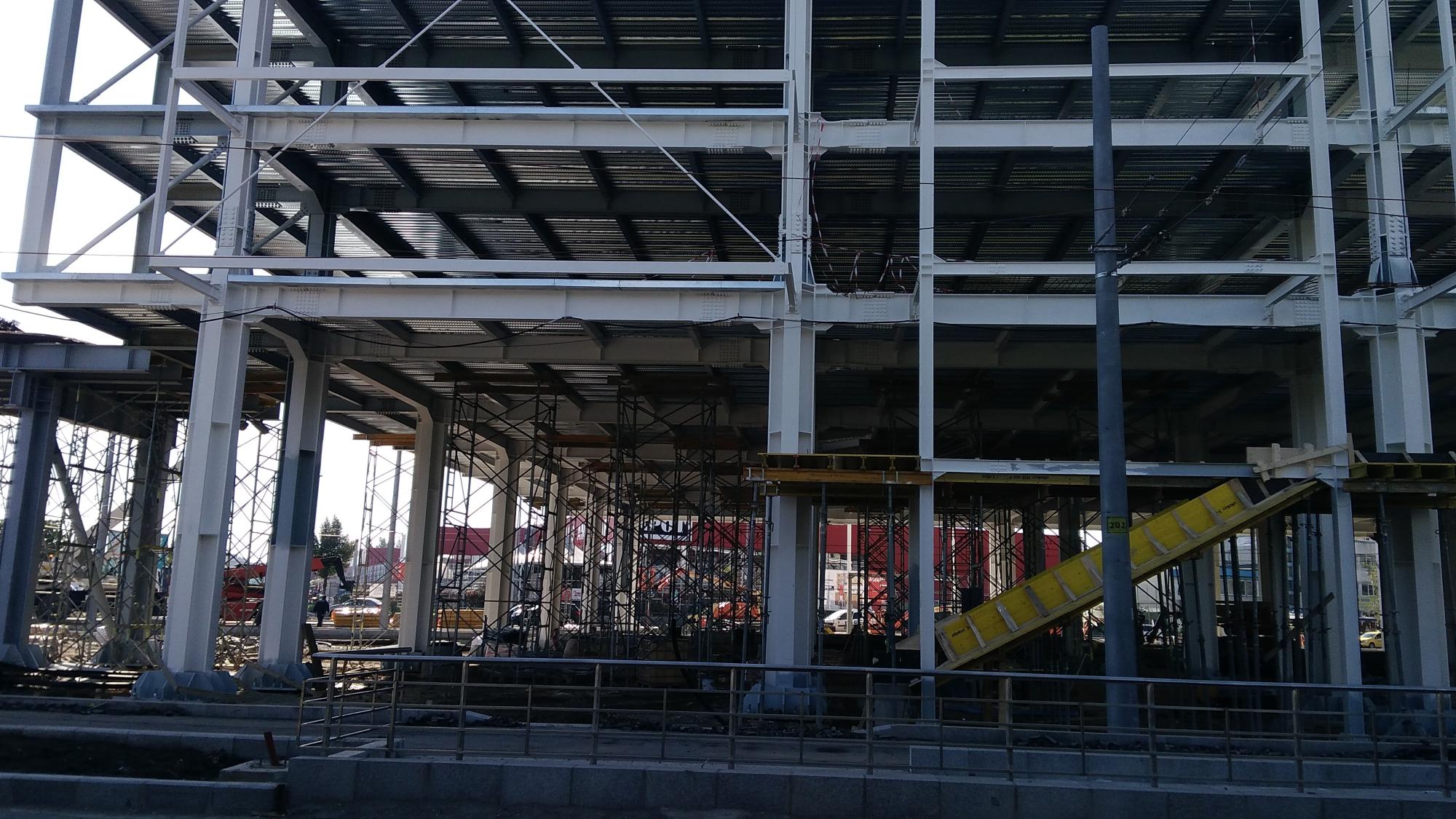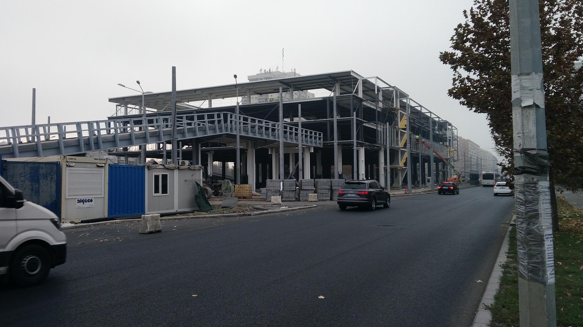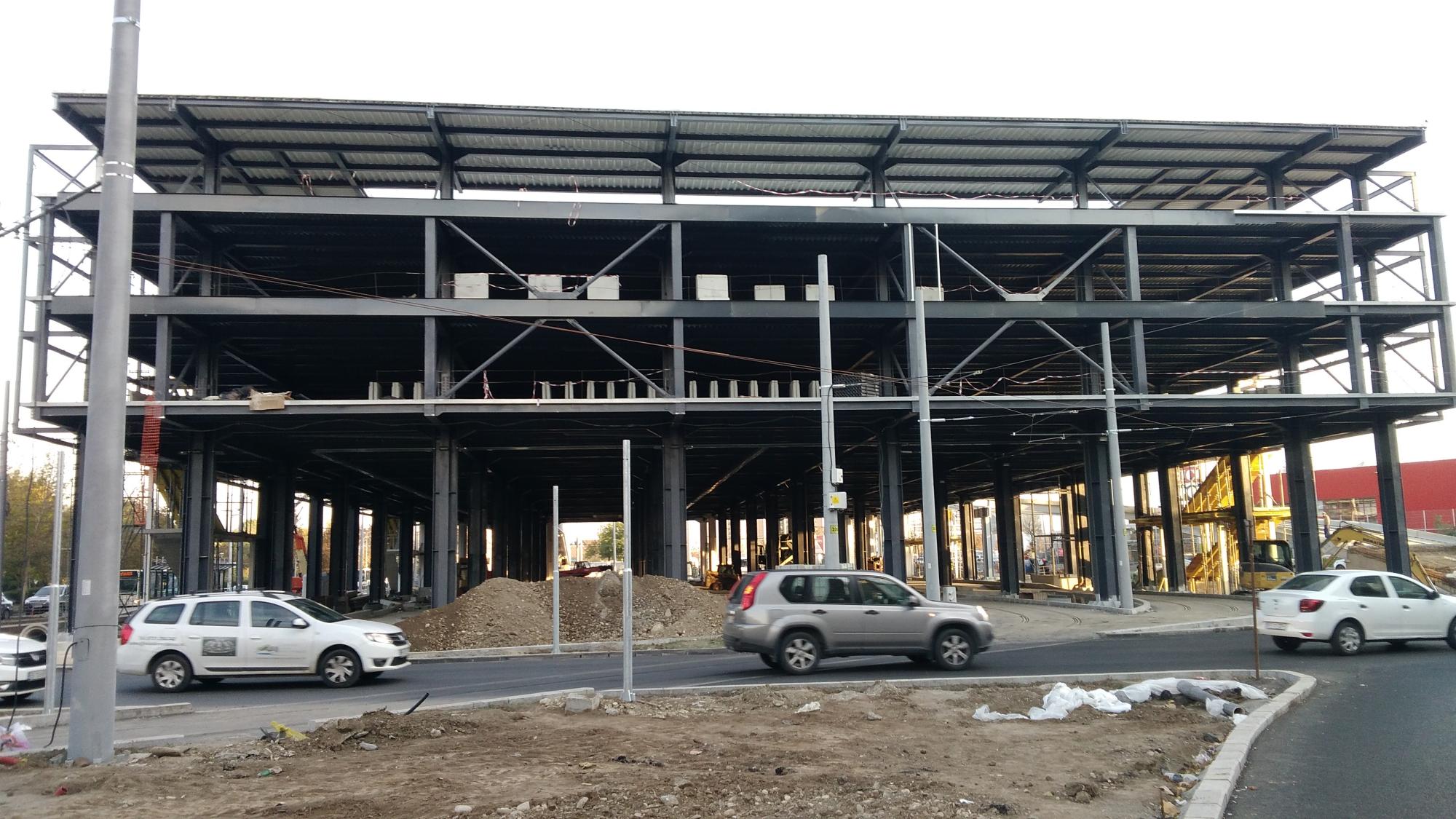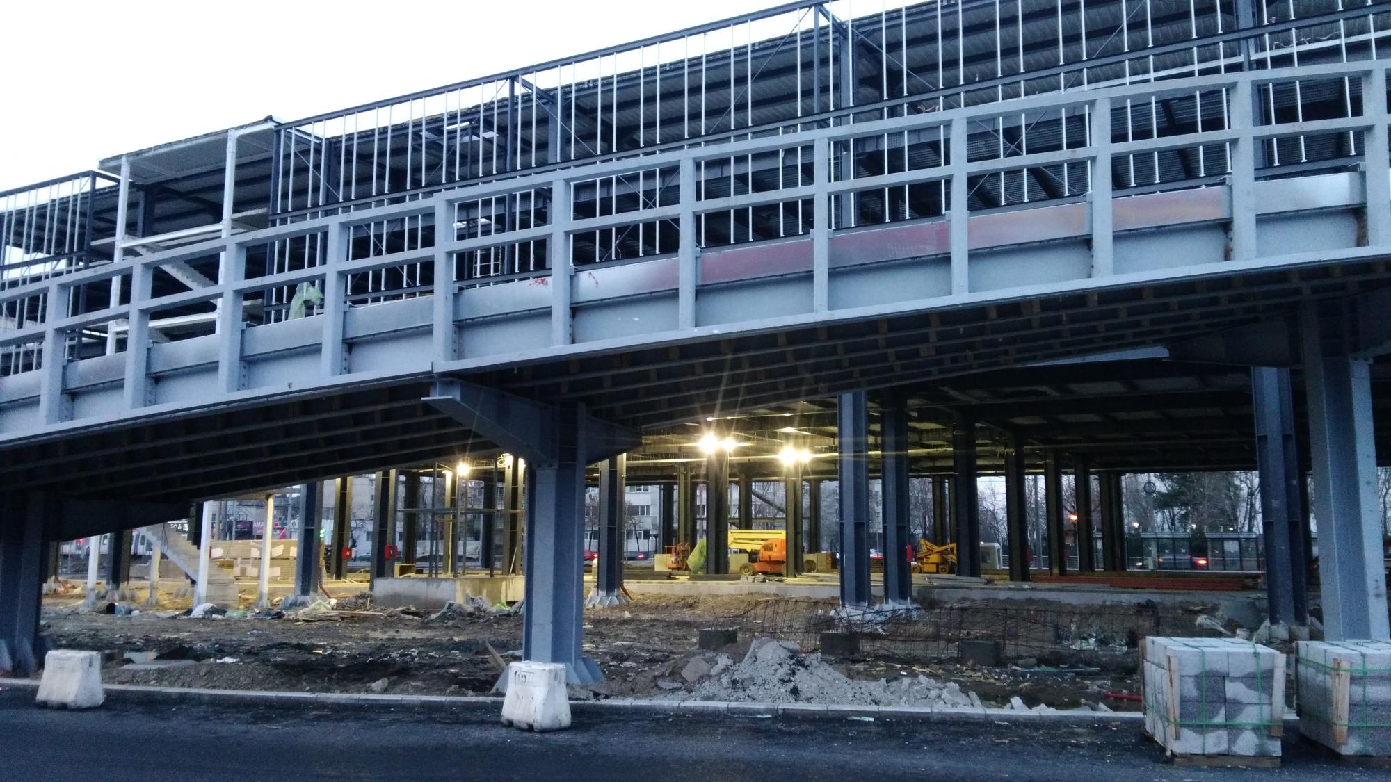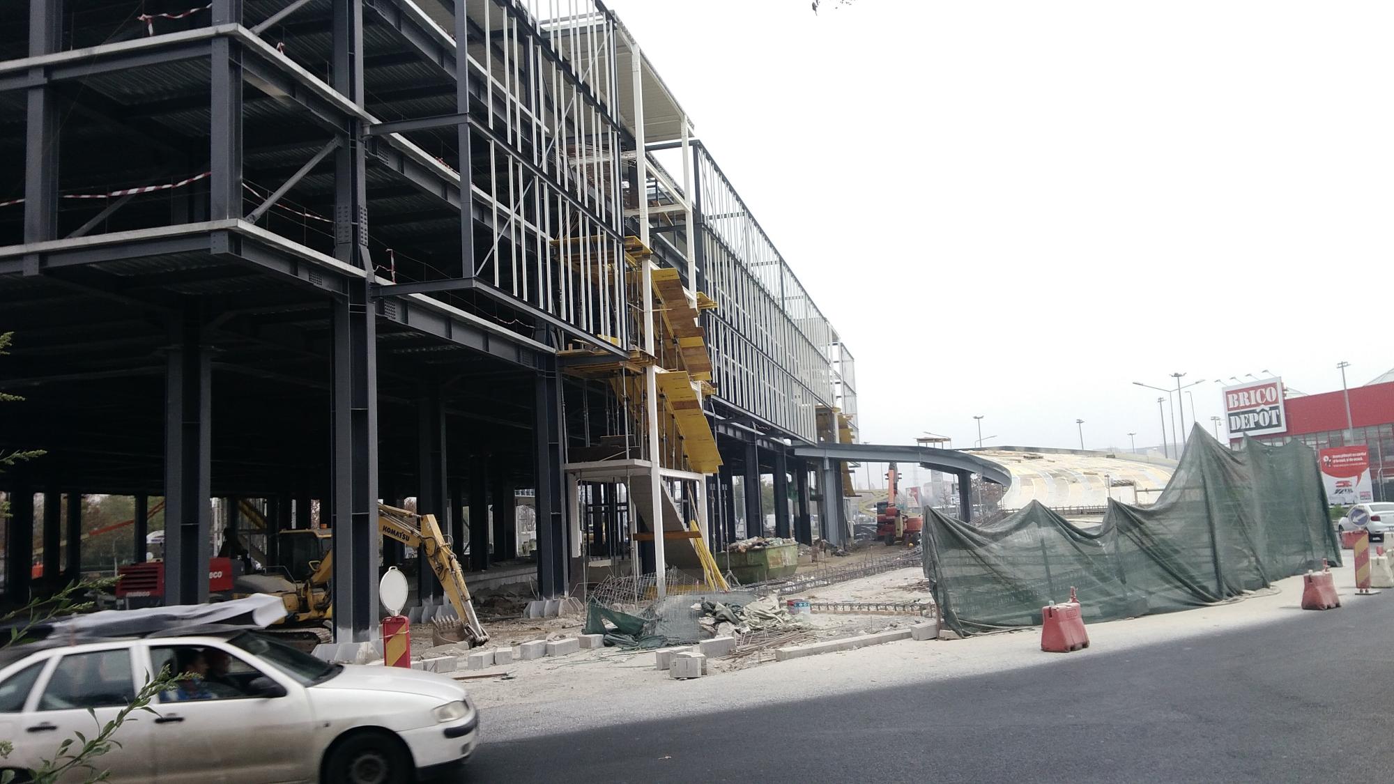 Au mai avansat pe la scheletul fatadei dinspre parcul Cosmos si au inceput sa puna esafodaj la rampa de iesire montata peste bucla tramvaiului, semn ca se apuca de planseu.