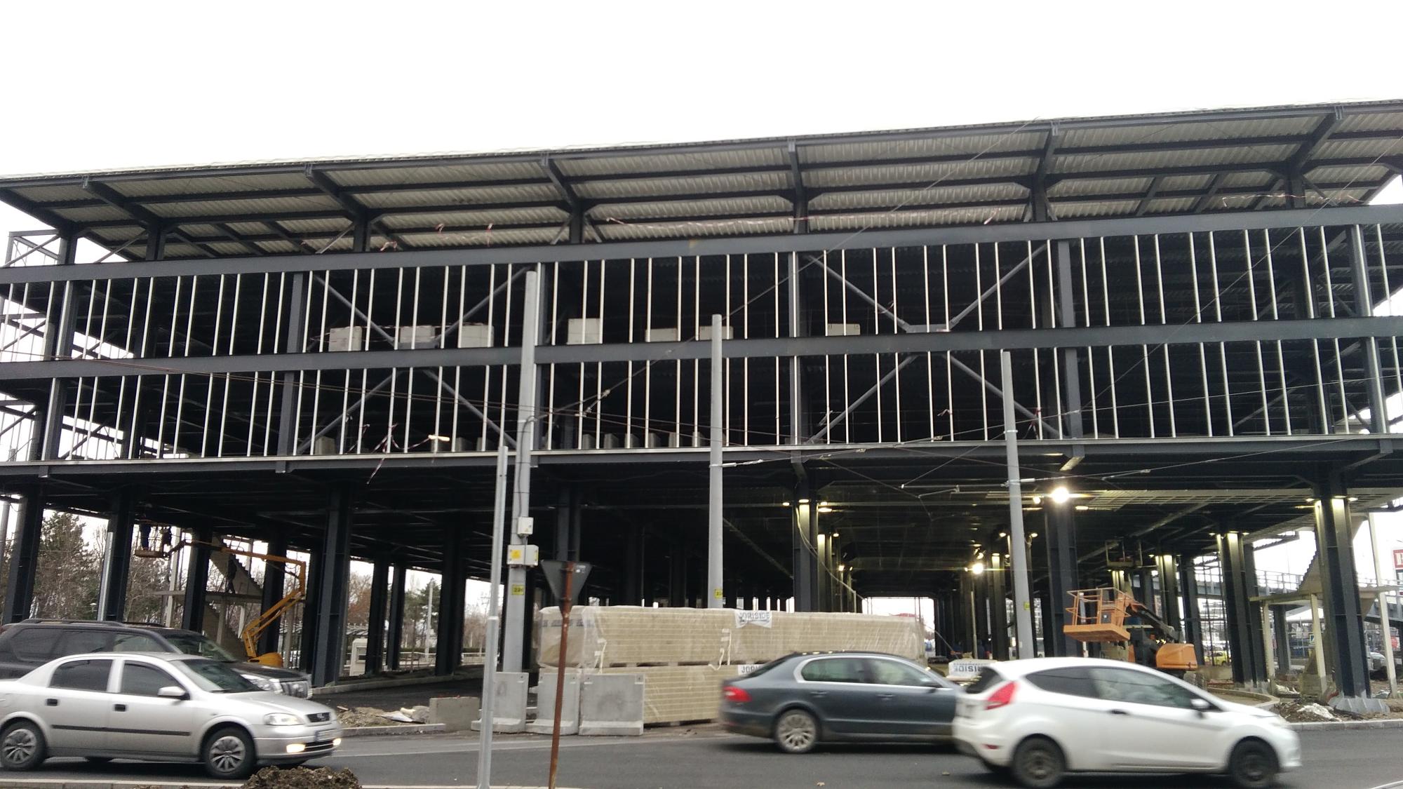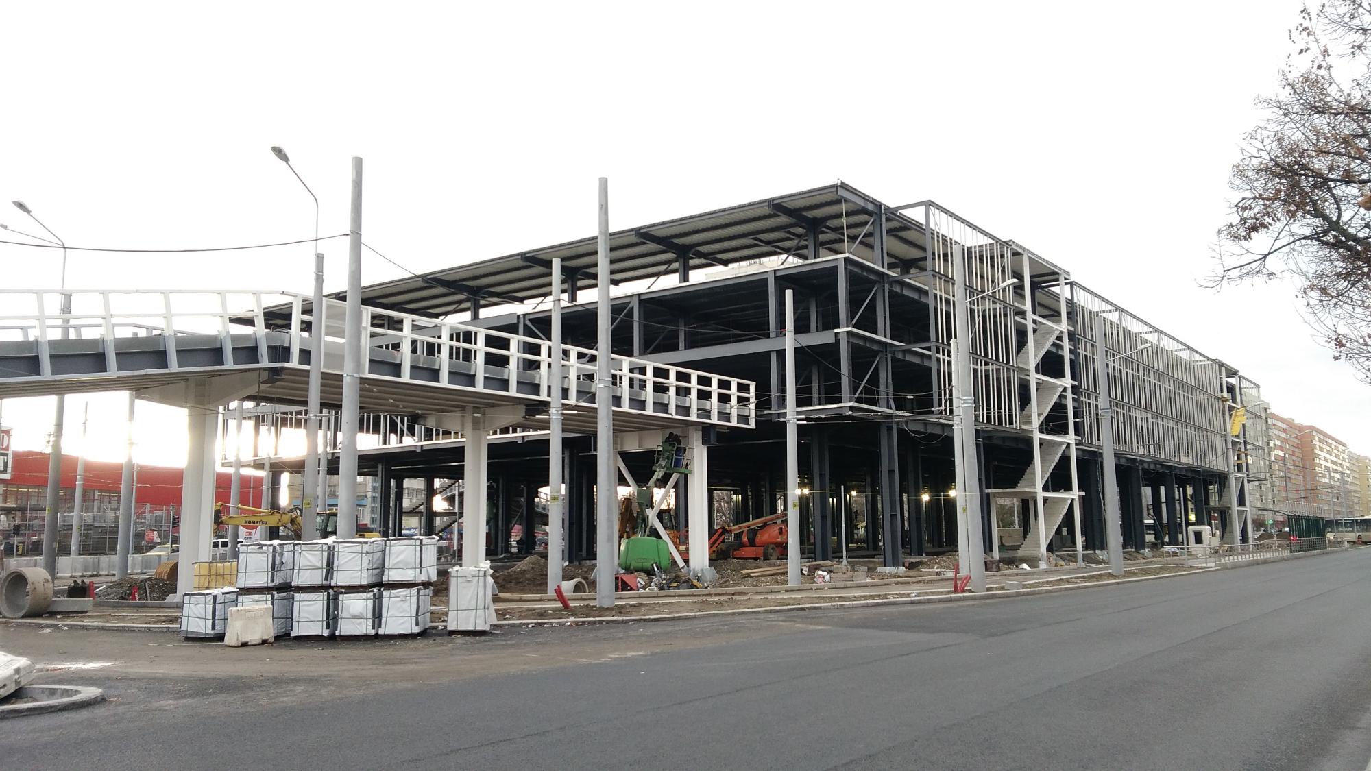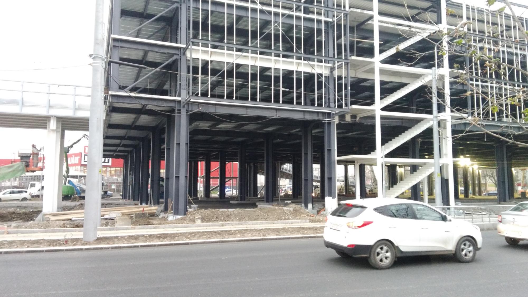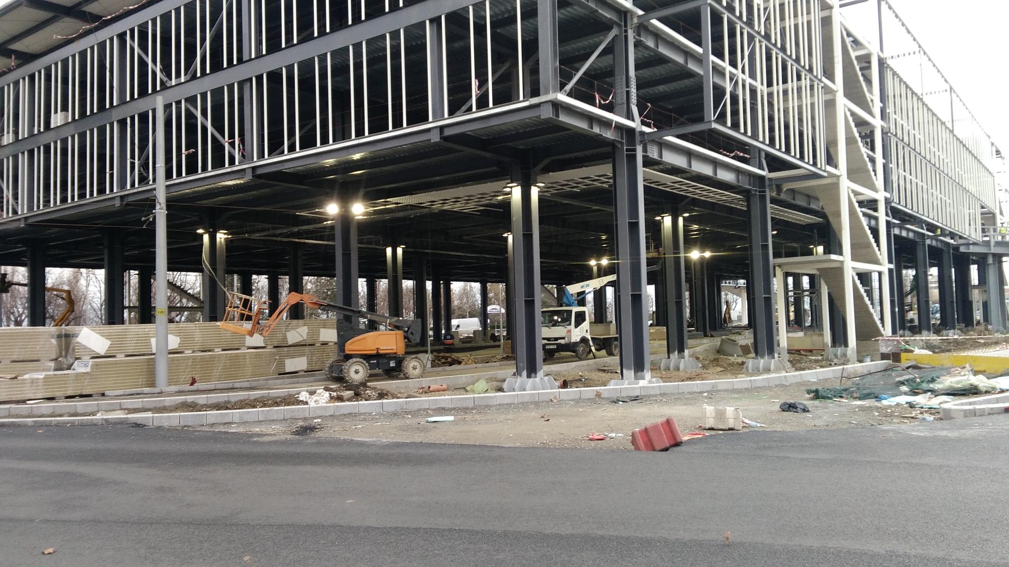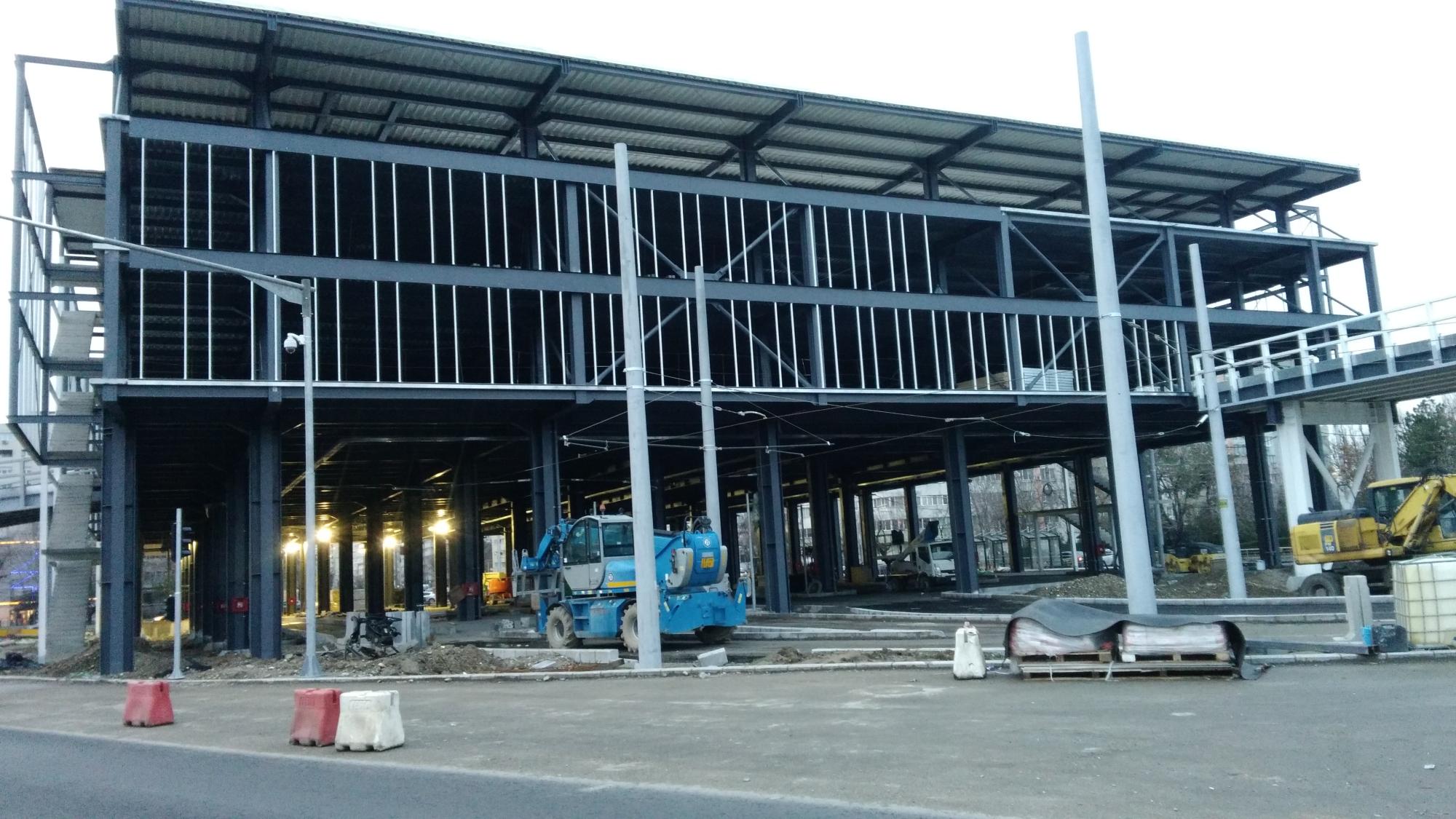 Au mai avansat pe la scheletul fatadei dinspre parcul Cosmos si au inceput sa puna esafodaj la rampa de iesire montata peste bucla tramvaiului, semn ca se apuca de planseu.