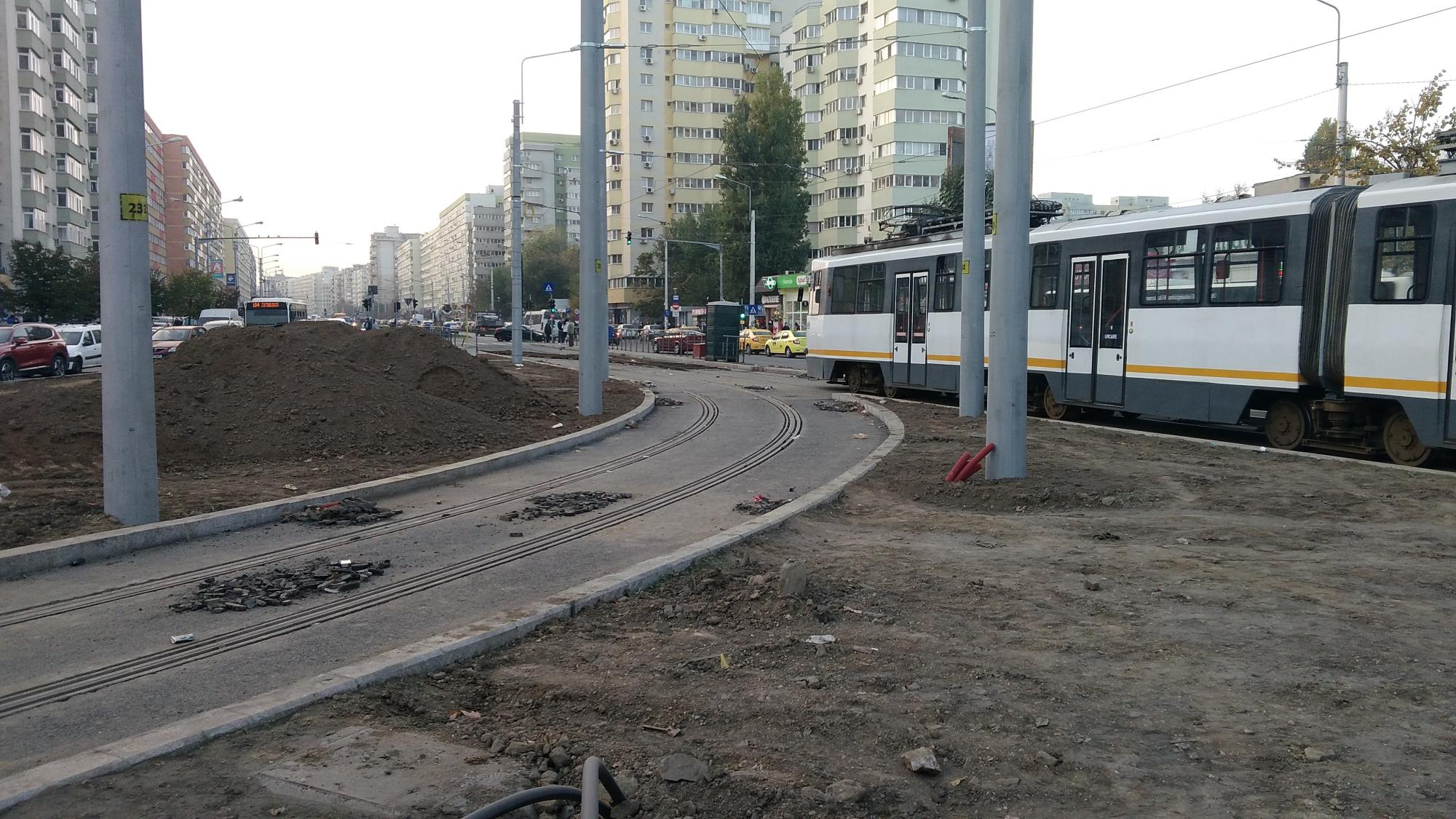 In rest liniste si pace. Tramvaiul mai asteapta, nu s-a asfaltat restul de la firul doi iar pe firul unu iar sunt niste esafodaje in parter.
