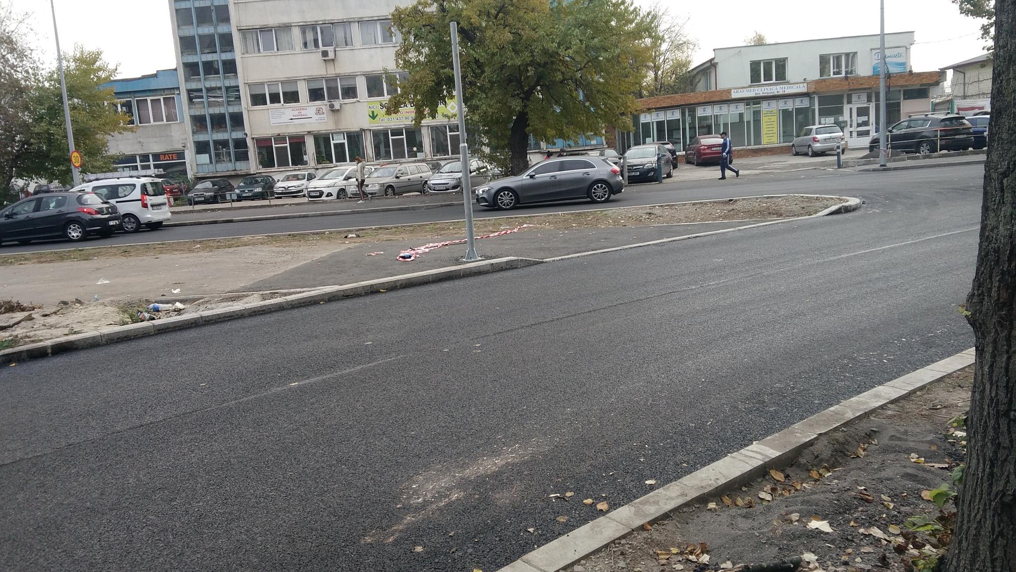 - este prezent un finisor de asfalt in locatie s-ar putea sa se mai asfalteze.