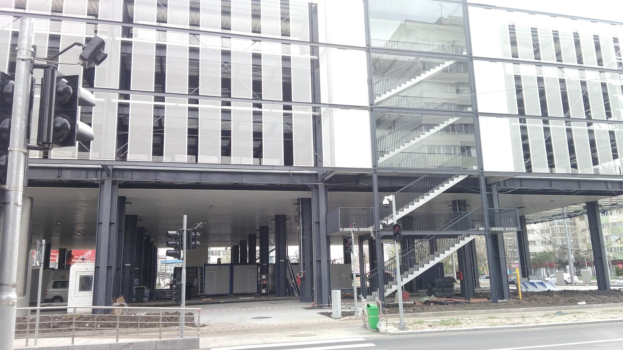 S-au mutat containerele din zona rampei de iesire in zona culoarelor pentru autobuze din parterul constructiei.